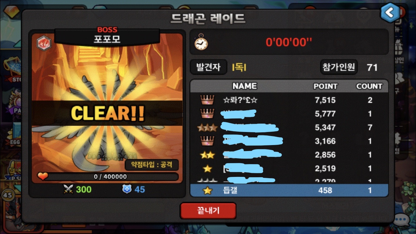 피 6만일때 들어갔는데 실수로 막타먹어버렸네요