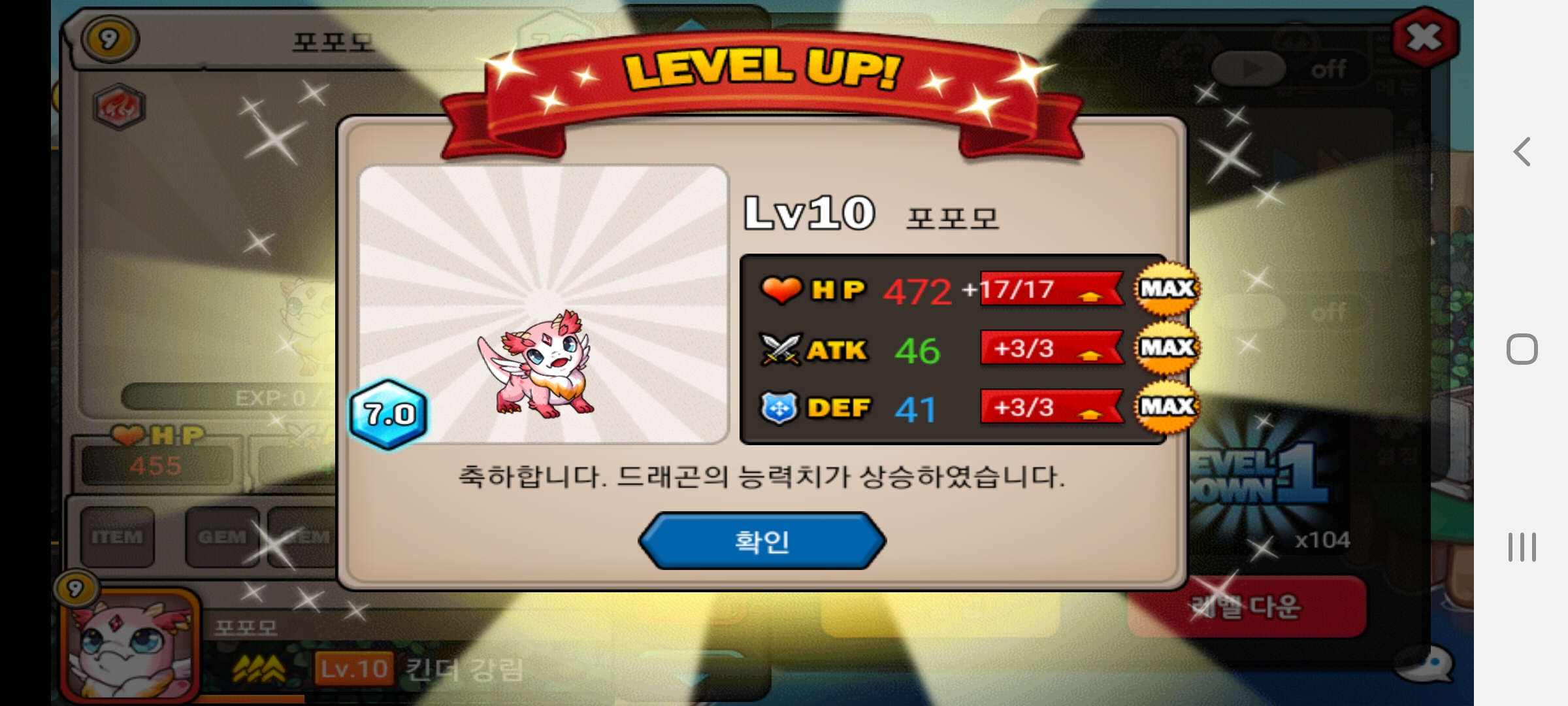 스업16개로 포포모 1렙-->10렙
