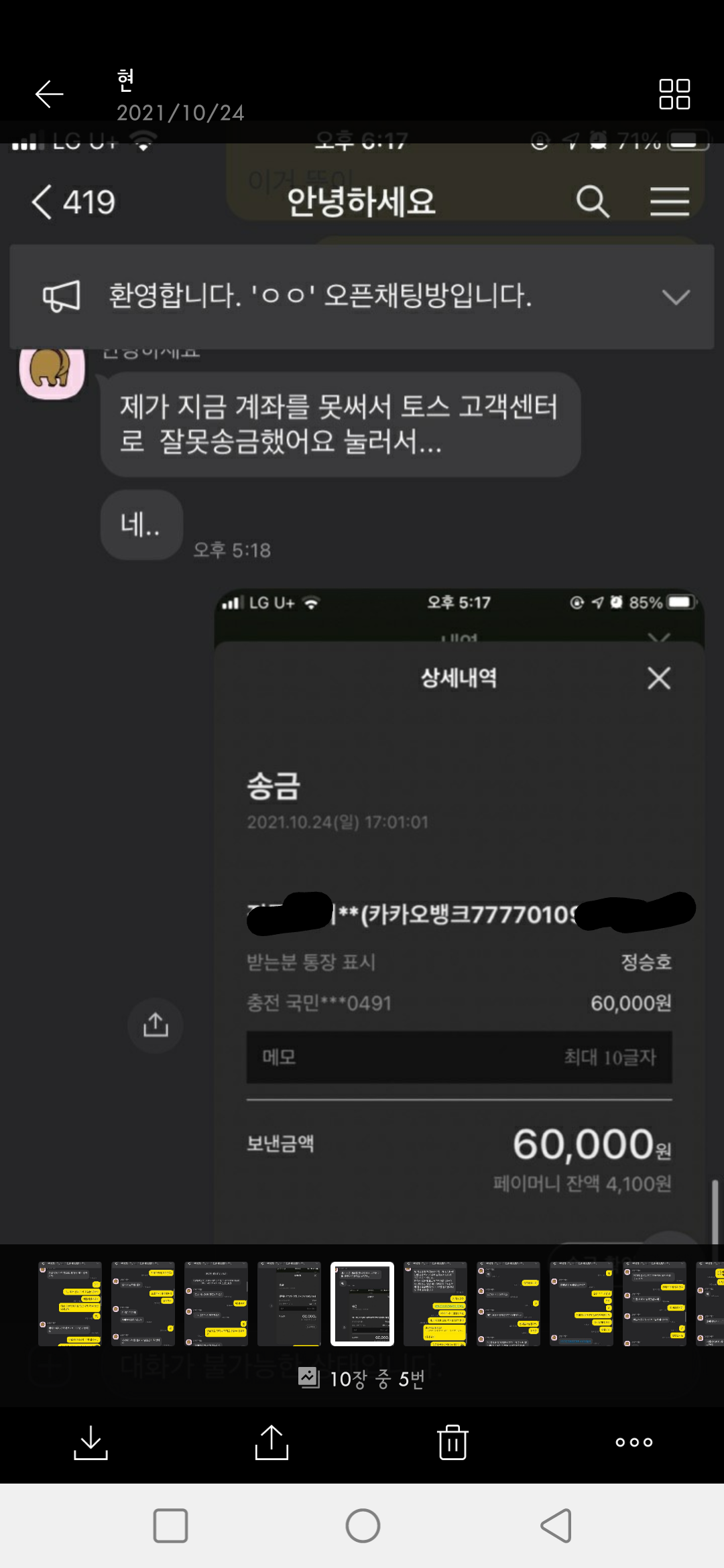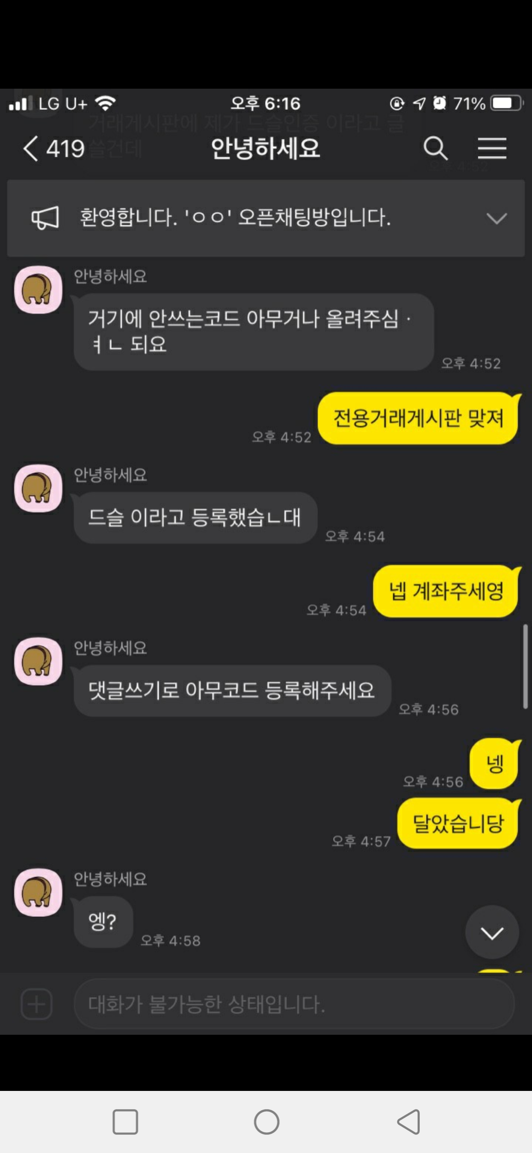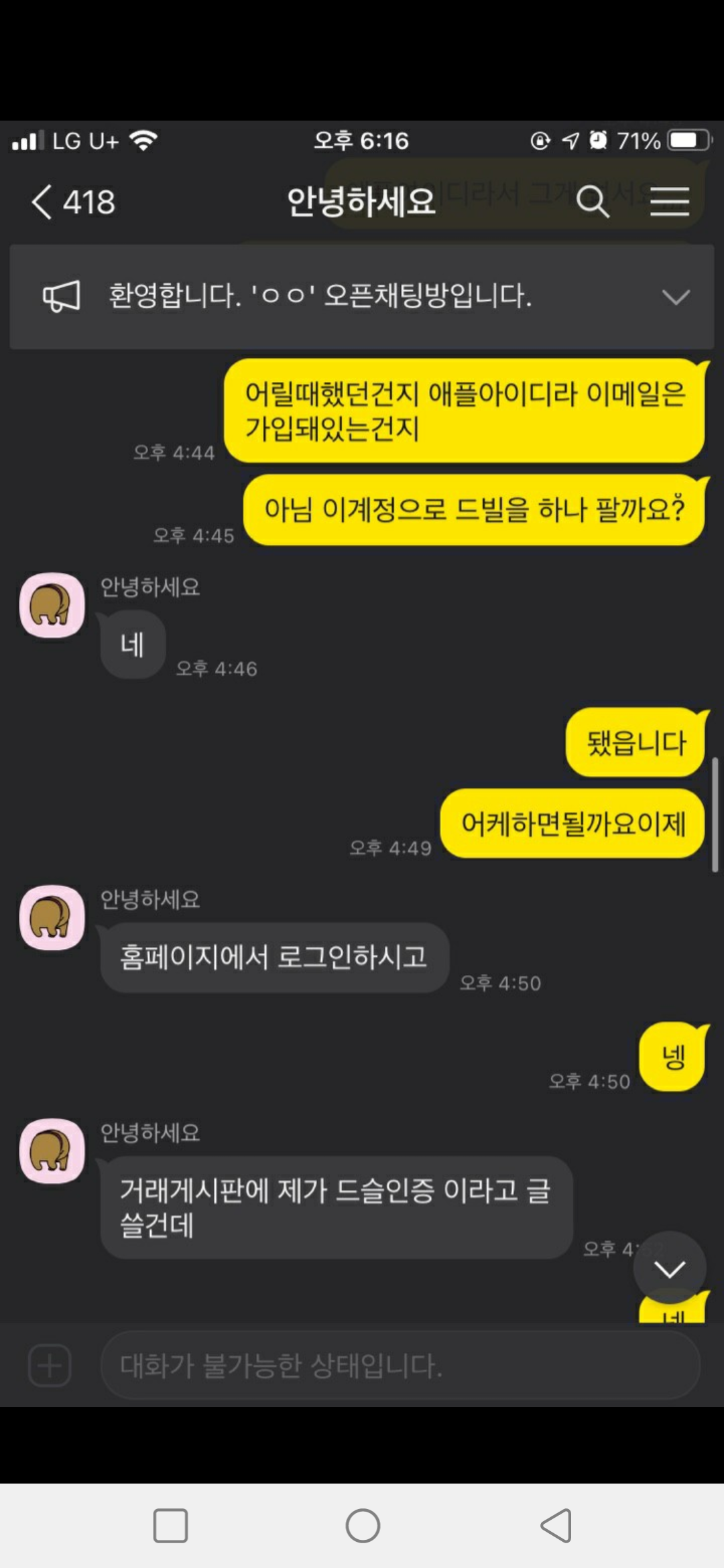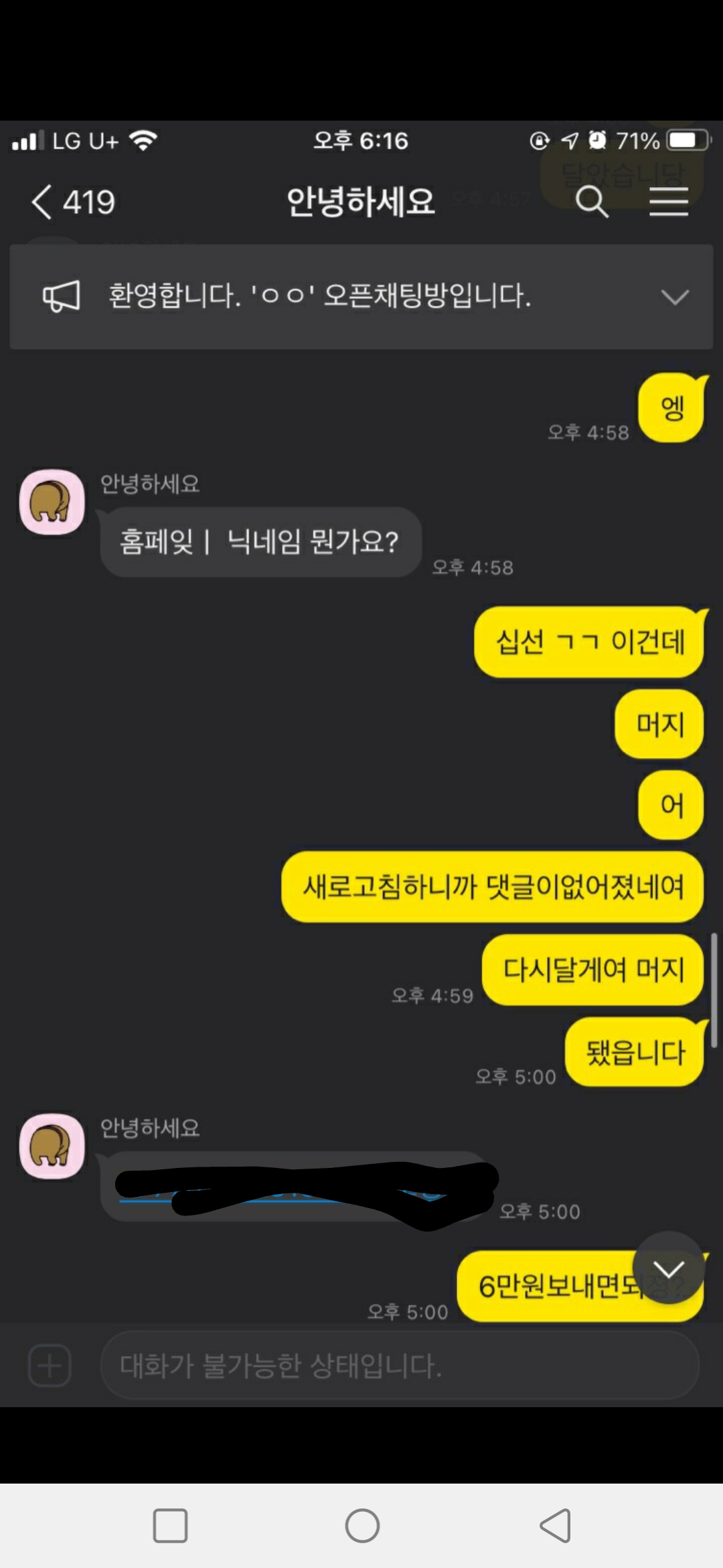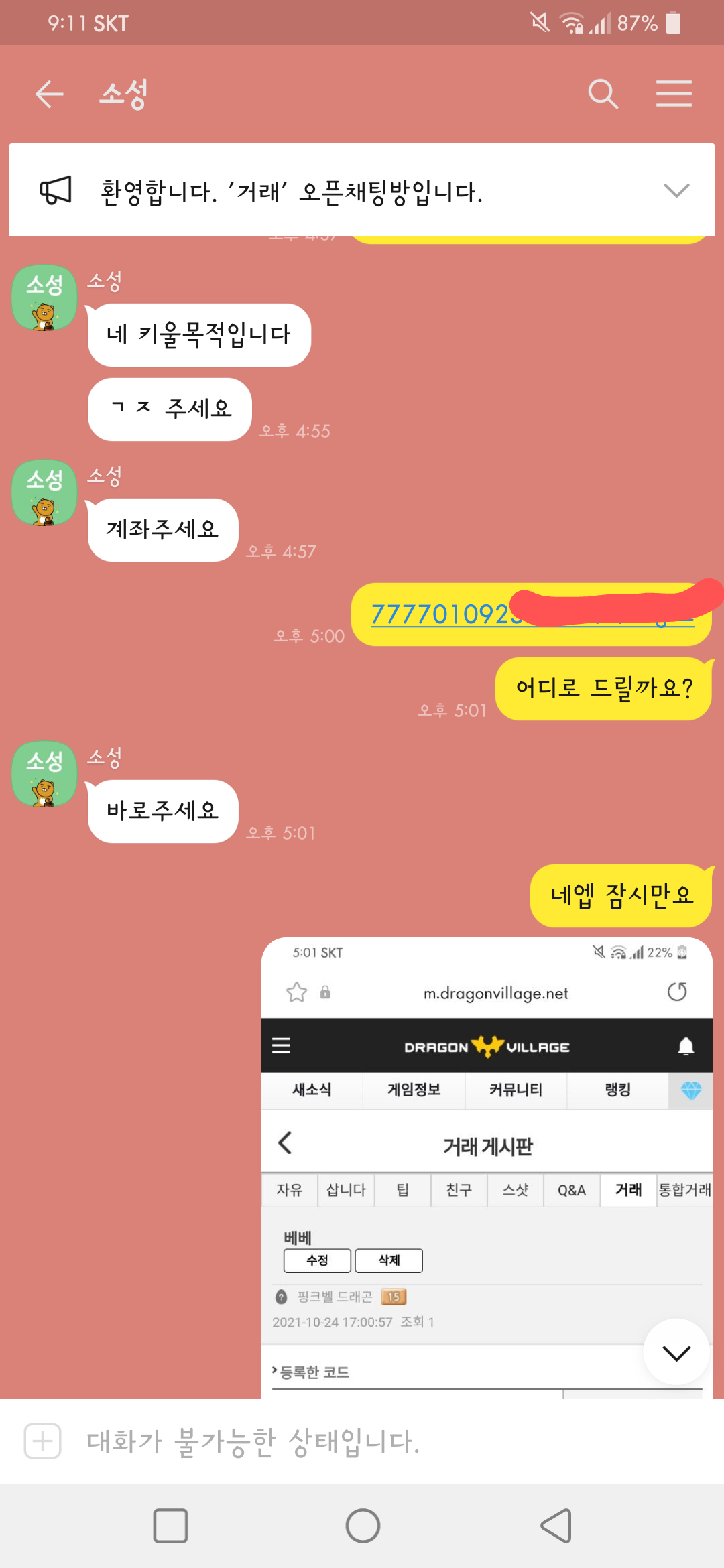 ↑사기당하신 라티나 님과의 대화 일부