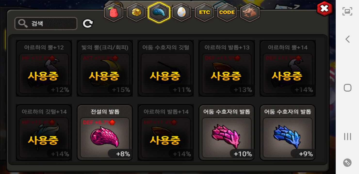 장신구를. 고귀한 장식을 15,알하발톱,빛의뿔 등등