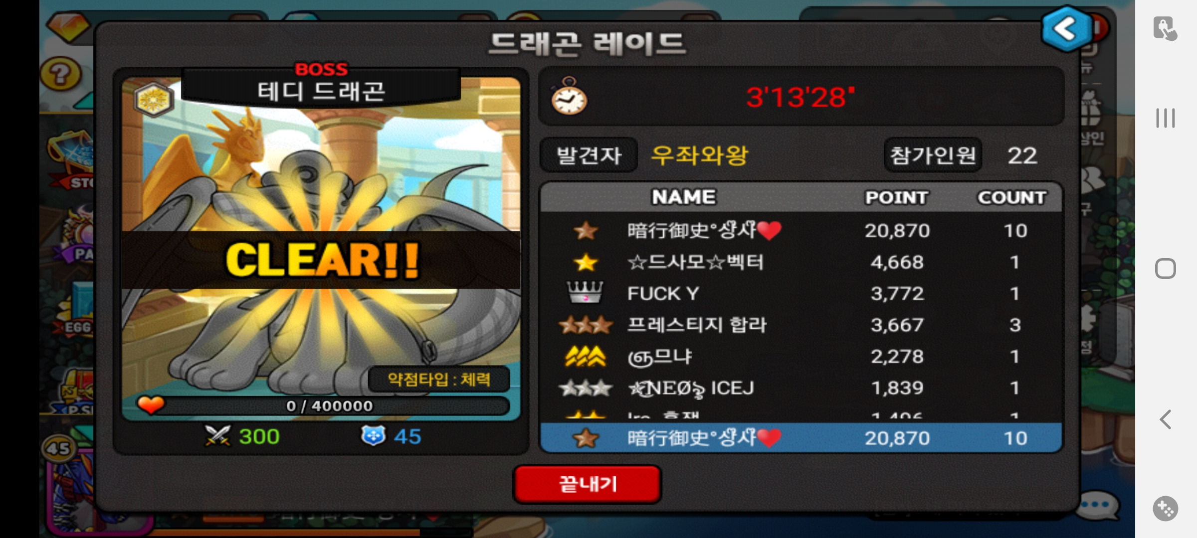 막타 또뺏겼다