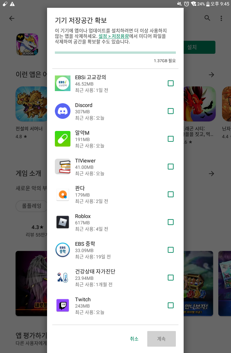 1.37기가 업뎃하는데 필요하다 해서 드빌 지우고 용량 정리한담에 설치하기 눌렀는데 이거 어케해야하는지 아시는분..?