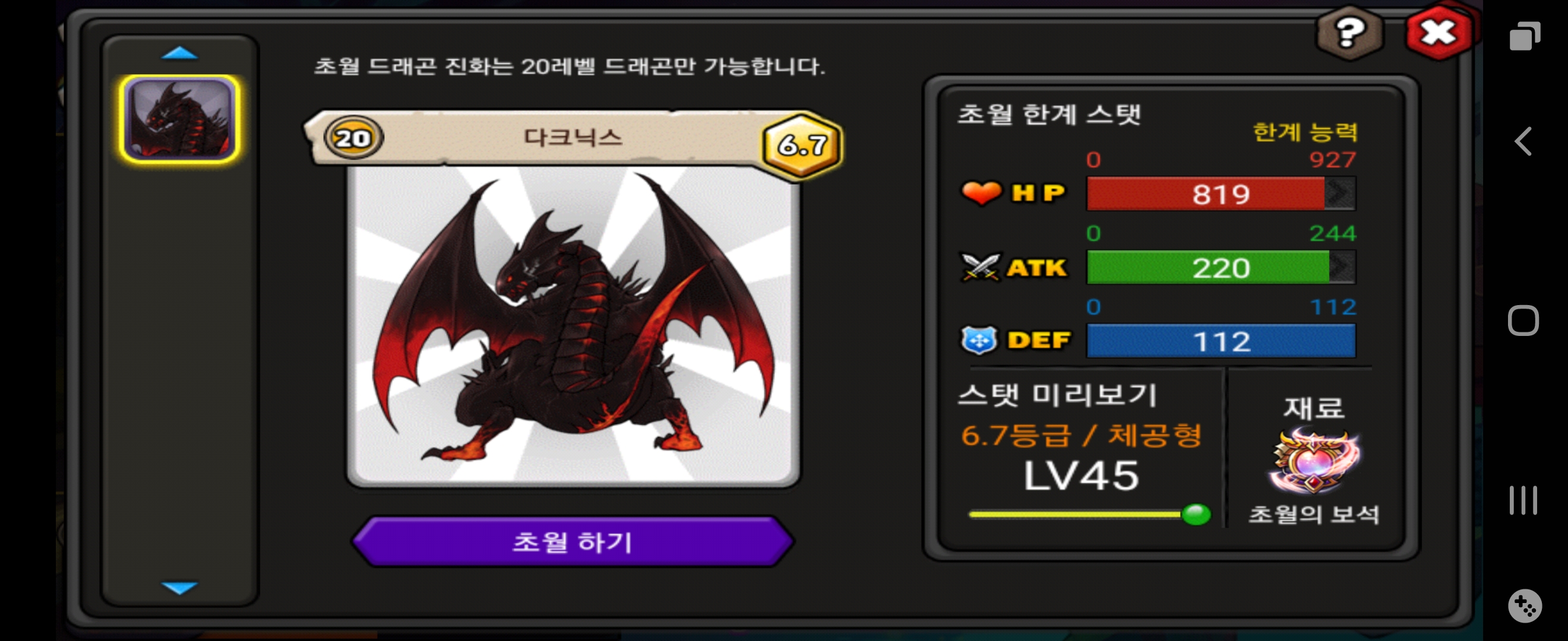 다닉을 꿈부써서 올맥으로 키운거 맞는데 초월 45렙 스탯이 이렇게 나오는게 맞나요??