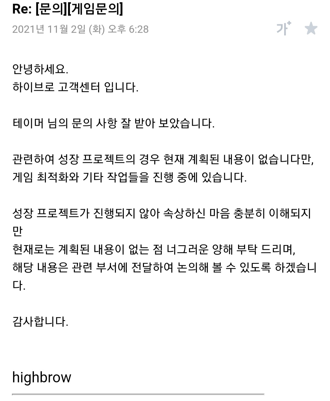 성프 계획는 없다고합니다