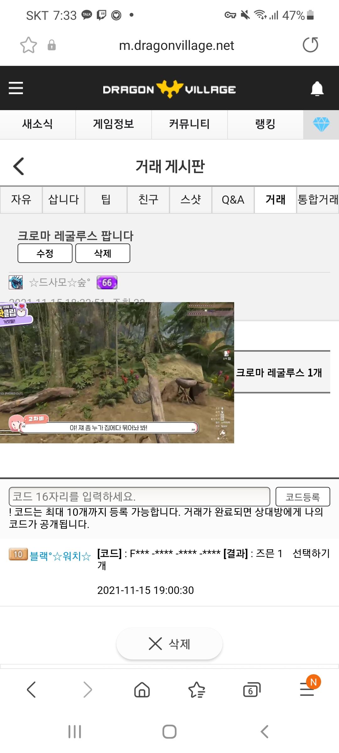 해당 게시글을