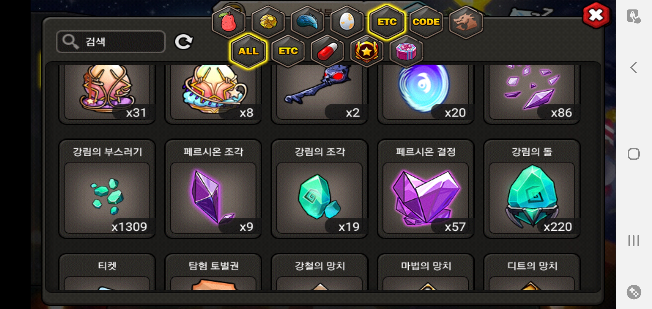 어릴 적엔 저거 부스러기 900개 모으는 거 때문에 고인물 랭커 아니면 아무나 각성 못 하는 시대였는데 지금 가방에 결정이 57개나 쌓였네요 ㅋㅋ