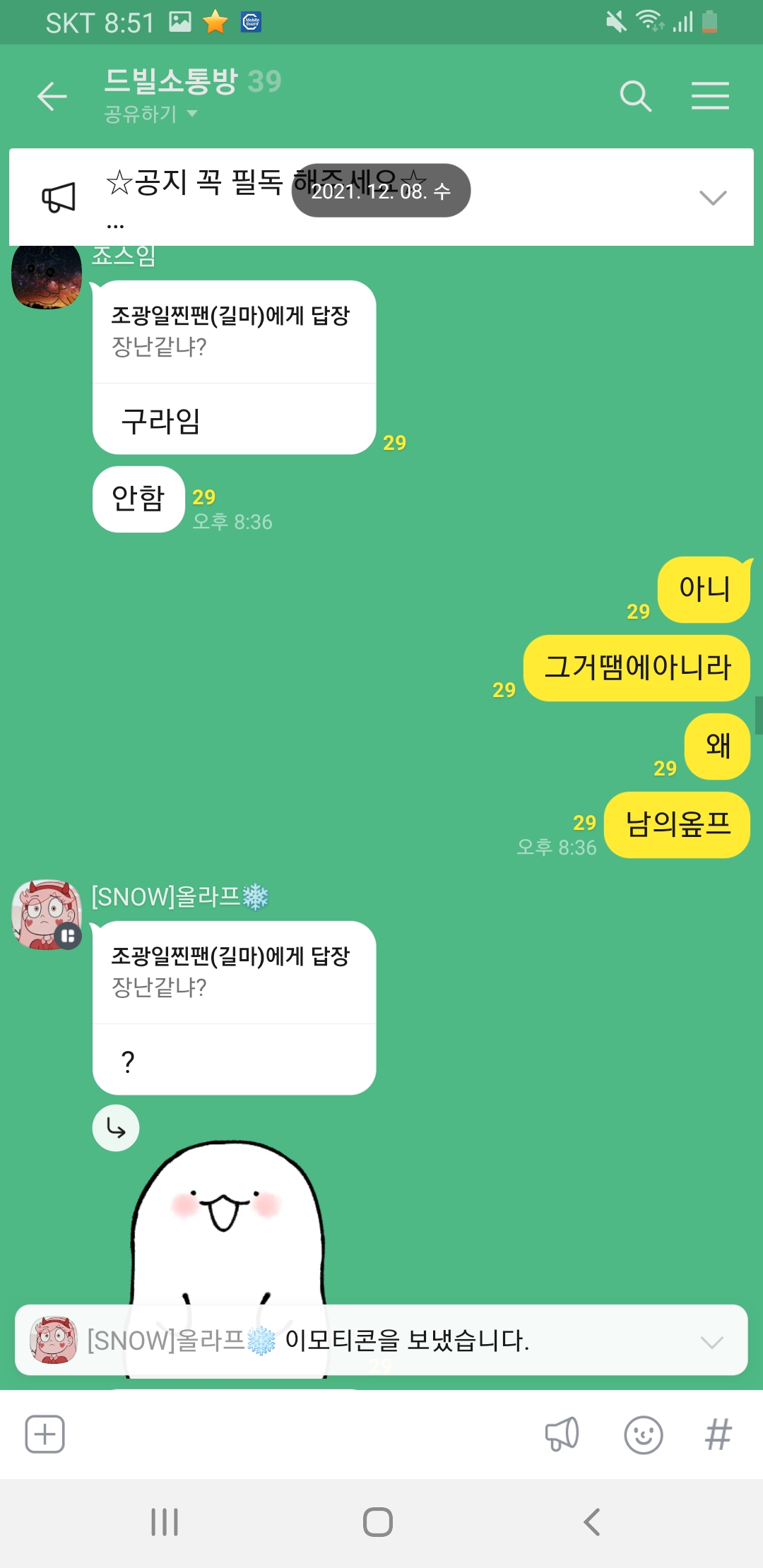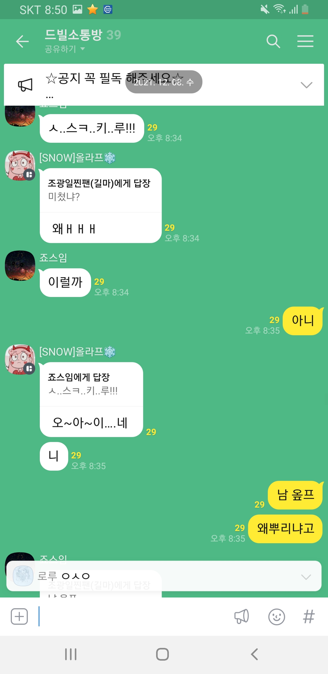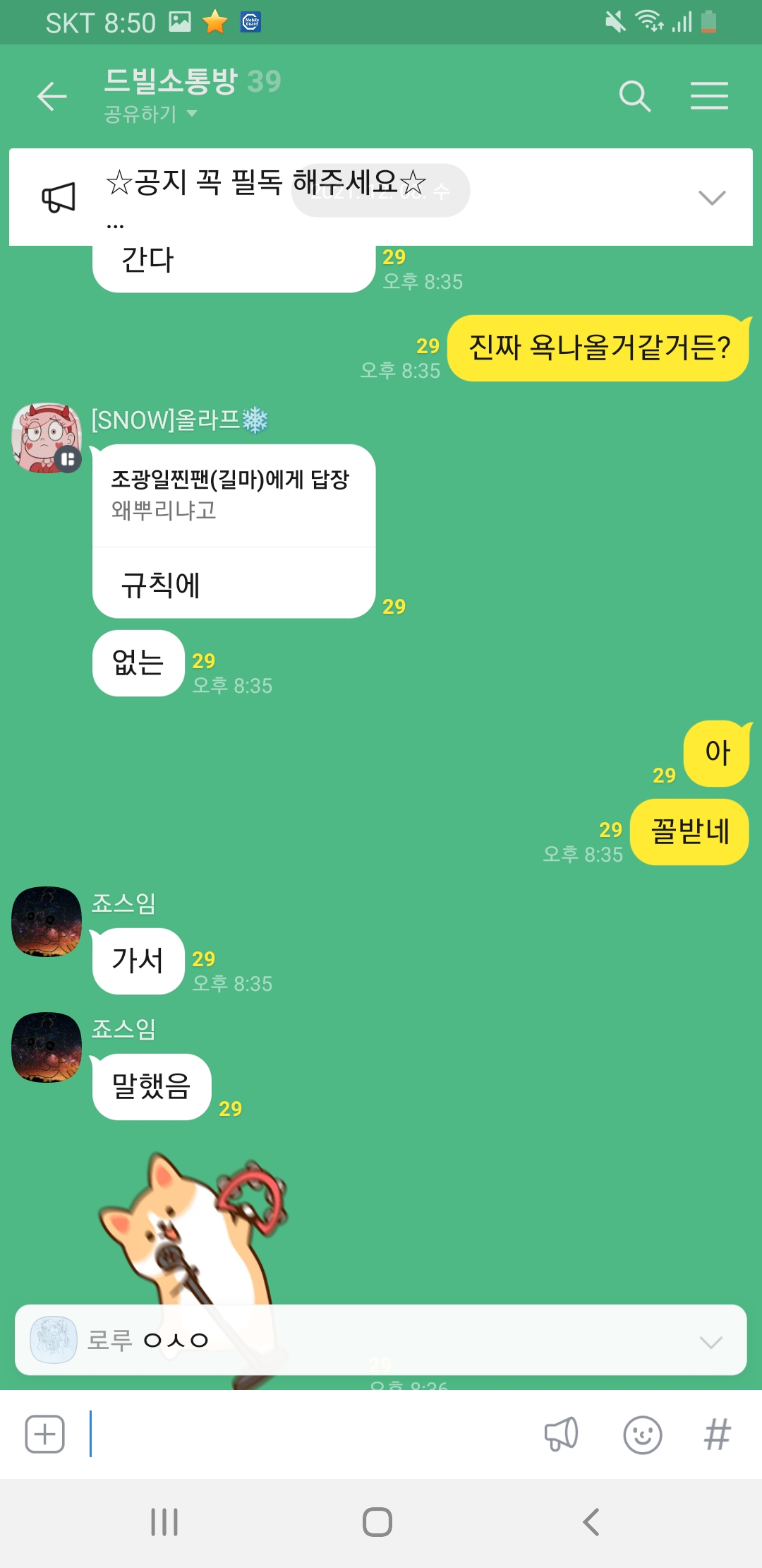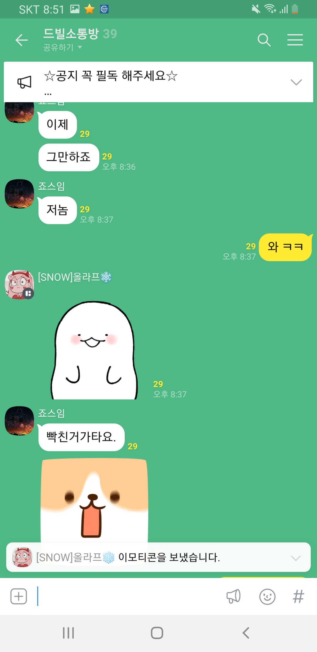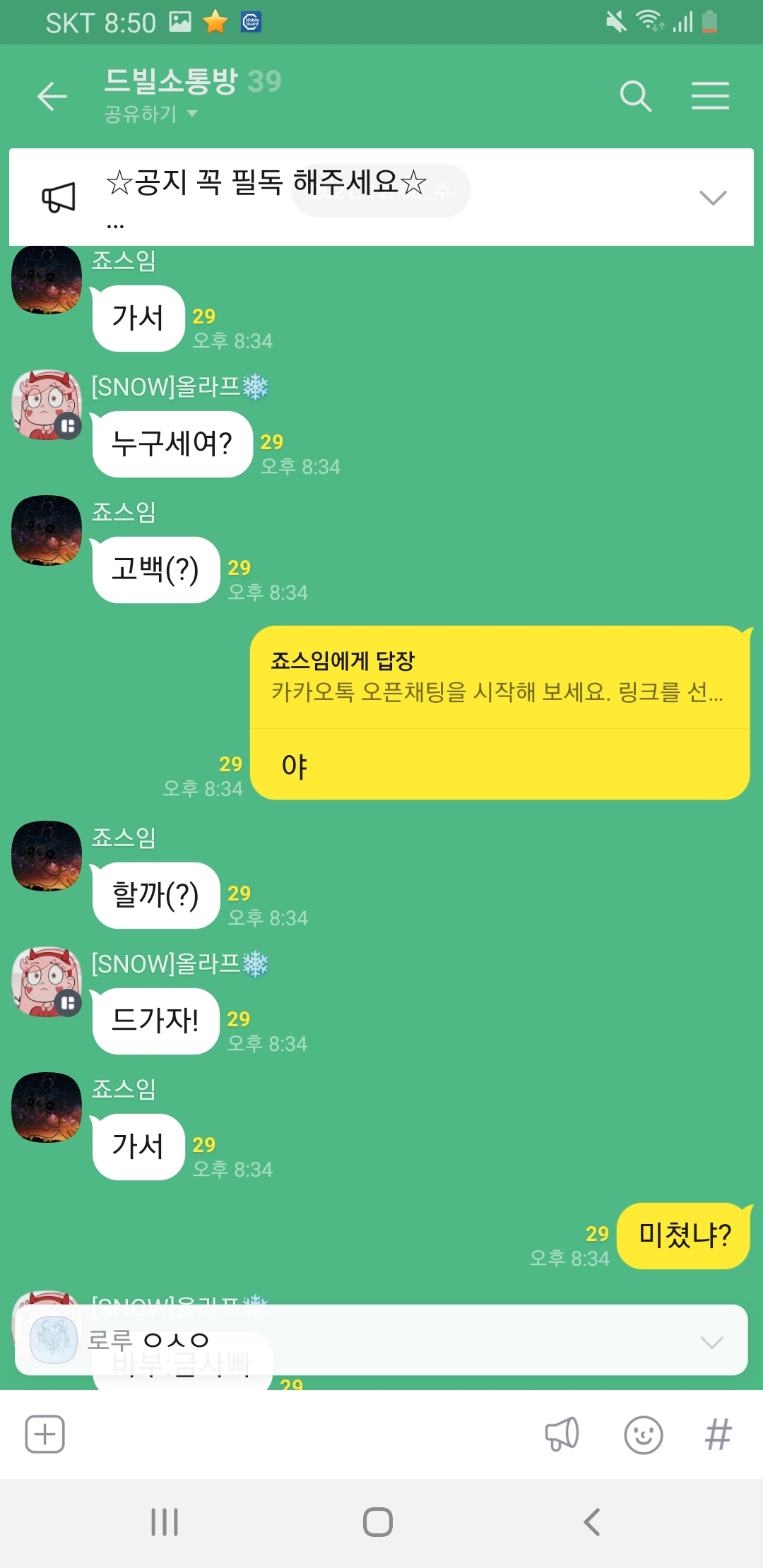 저랑 연락하는 애가있는데 갑자기 죠스님이 그분옾쳇링크를 뿌렸고(허락없이)