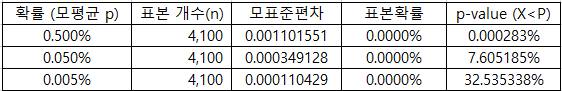 쉽게 말해서, p-value가 0.000283%라는 것은 레굴 알 드랍률이 0.5%일 경우 필자의 케이스는 0.000283%로 발생한다는 소리임