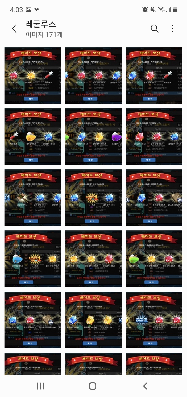 레굴루스의 보상 화면이 전부 스샷으로 찍혀져 남아있고, 그 수는 171장에 달한다.