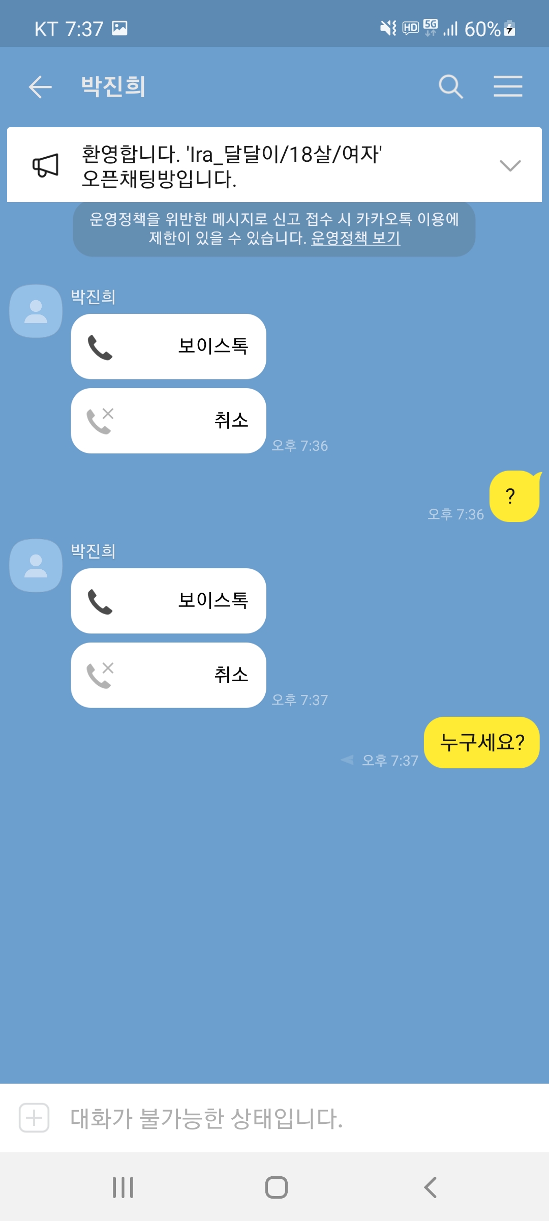 ㄹㅇ 뭐냐고 갑자기 갠톡 와서 전화질이야