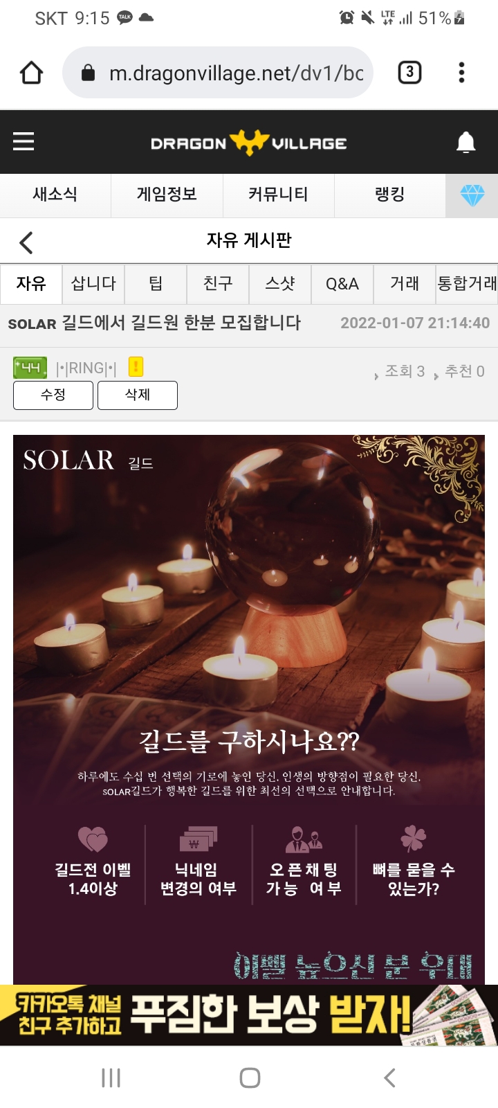 sᴏʟᴀʀ 길드에서 길드원 한분 모집합니다
