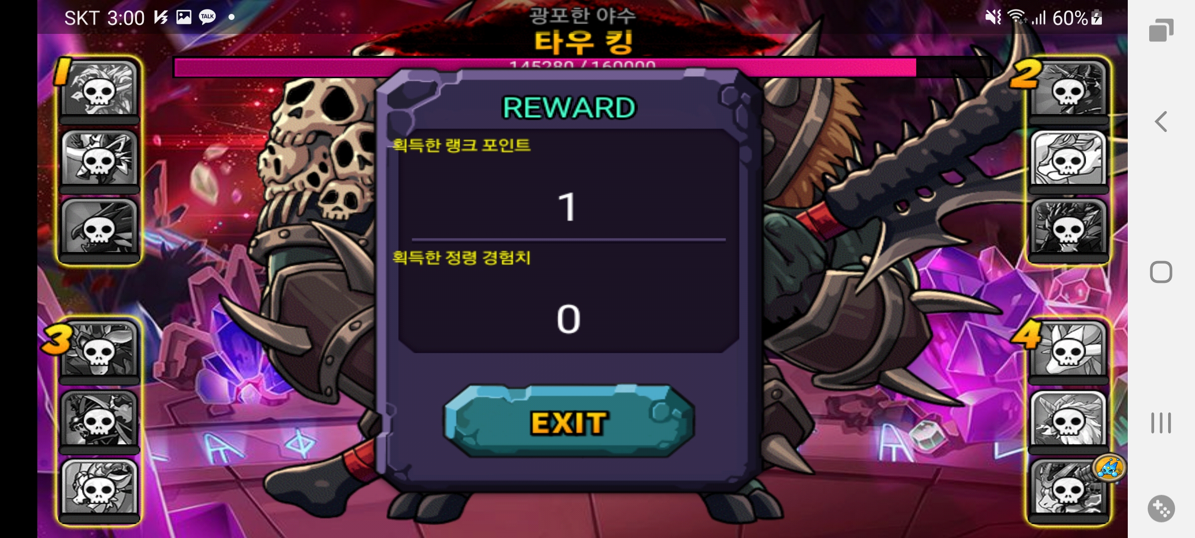 타우킹 체력이 대략 6만 언저리까지 깍입니다(부활 X)