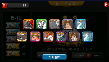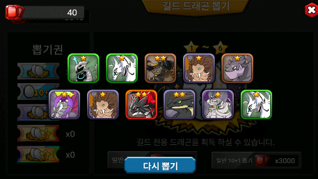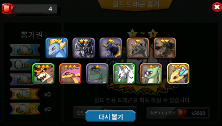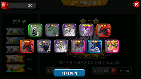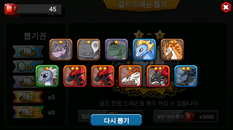 총 1회뽑 기준 총 450 번 뽑았는데 1성2성3성 파티