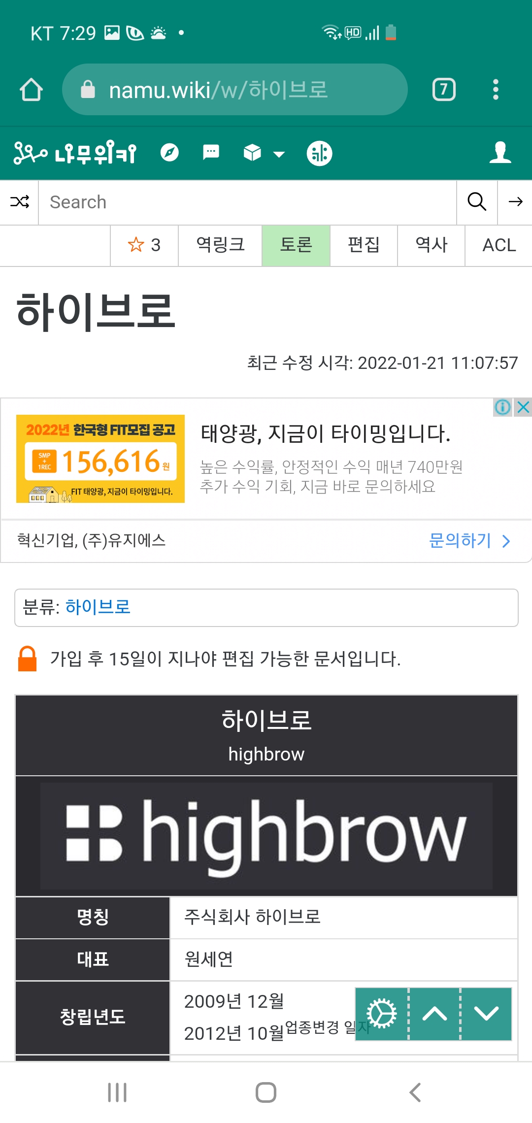 하이브로 나무위키 조작
