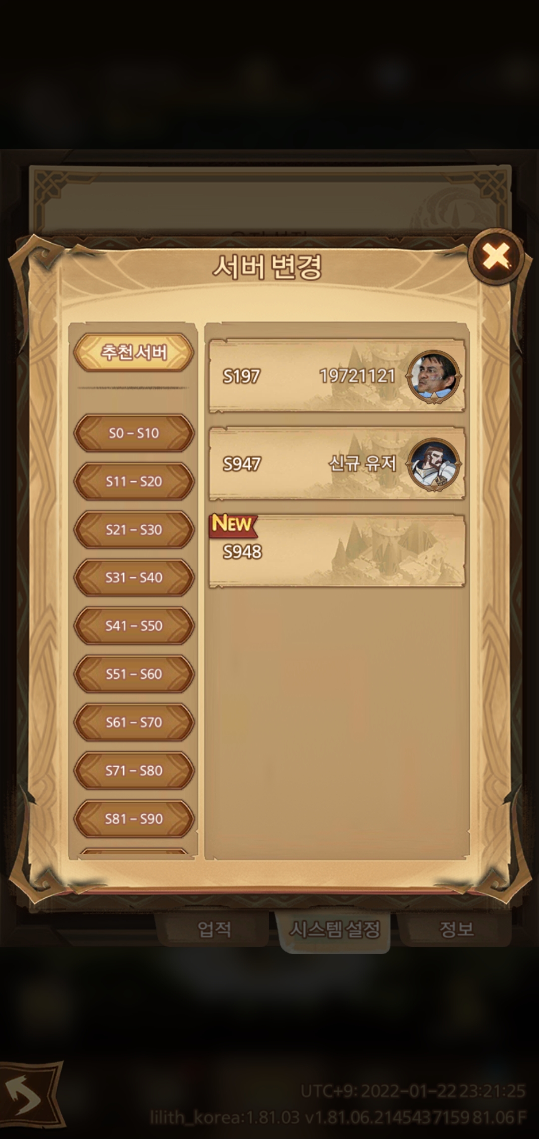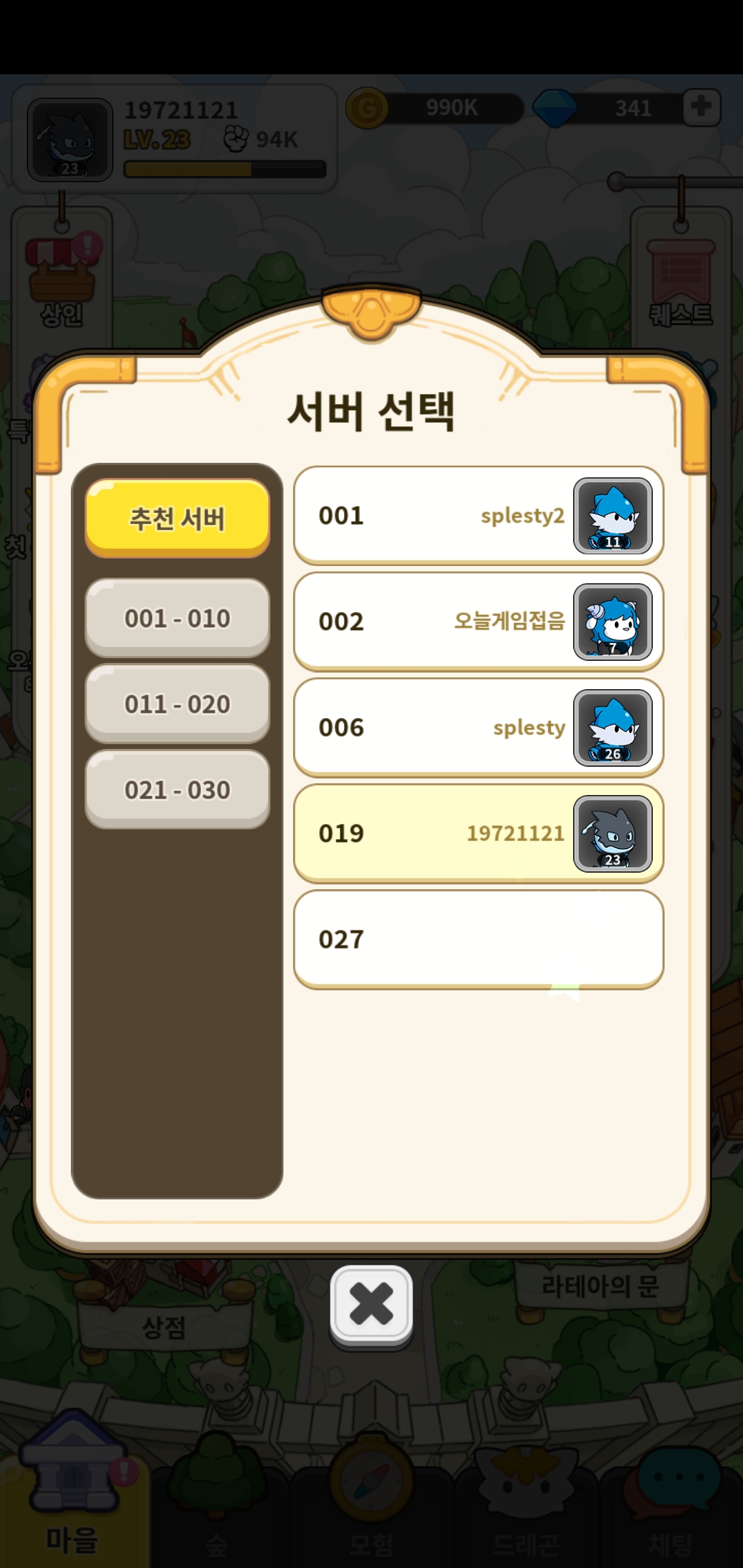 서버 선택 가능. 서버마다 계정을 다르게 생성할 수 있는 것도 동일. 차이점은 afk 아레나는 내 프로필을 사진으로 바꿀 수 있다는 것!