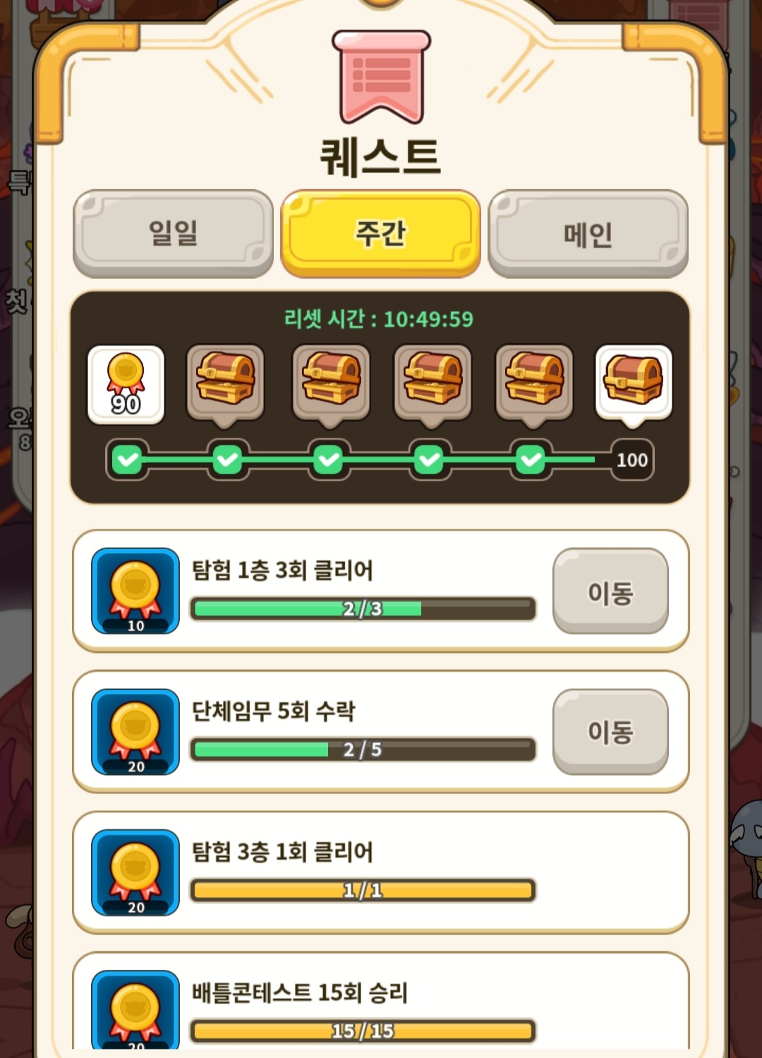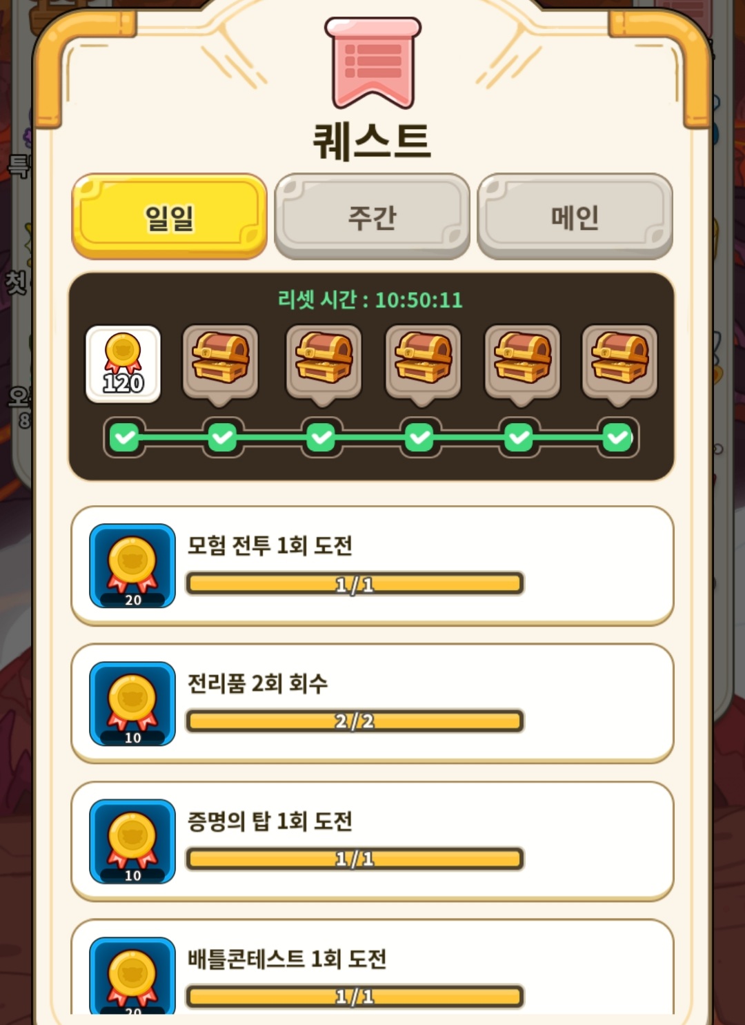 일일이나 주간이나 미션 클리어 하면 포인트가 모이고 상자로 추가 보상 받는 게 가능합니다.
