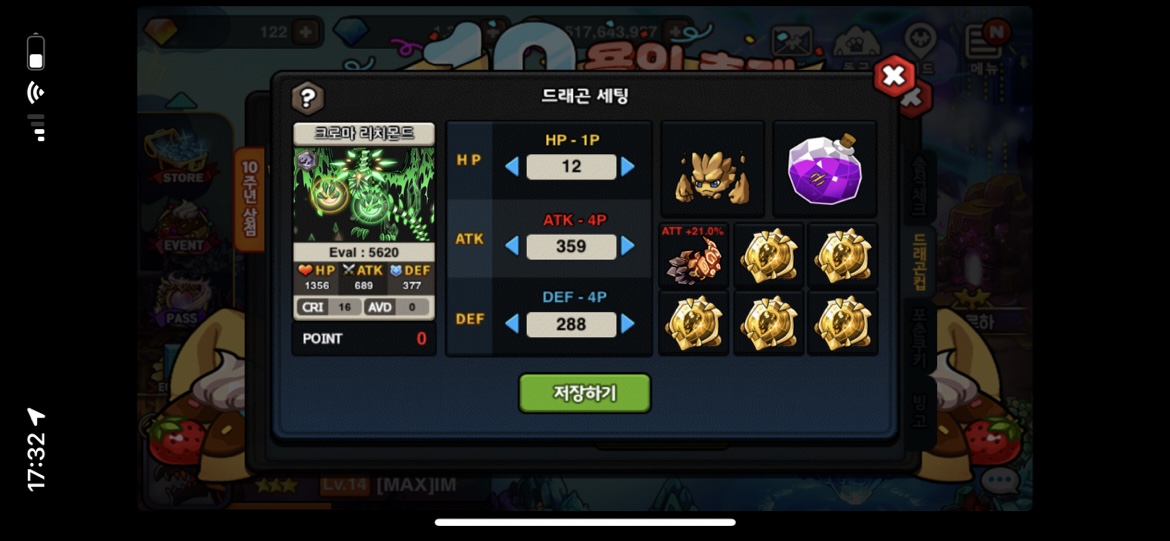 드컵 크물기준 1356 689 377 이벨 5620 세팅