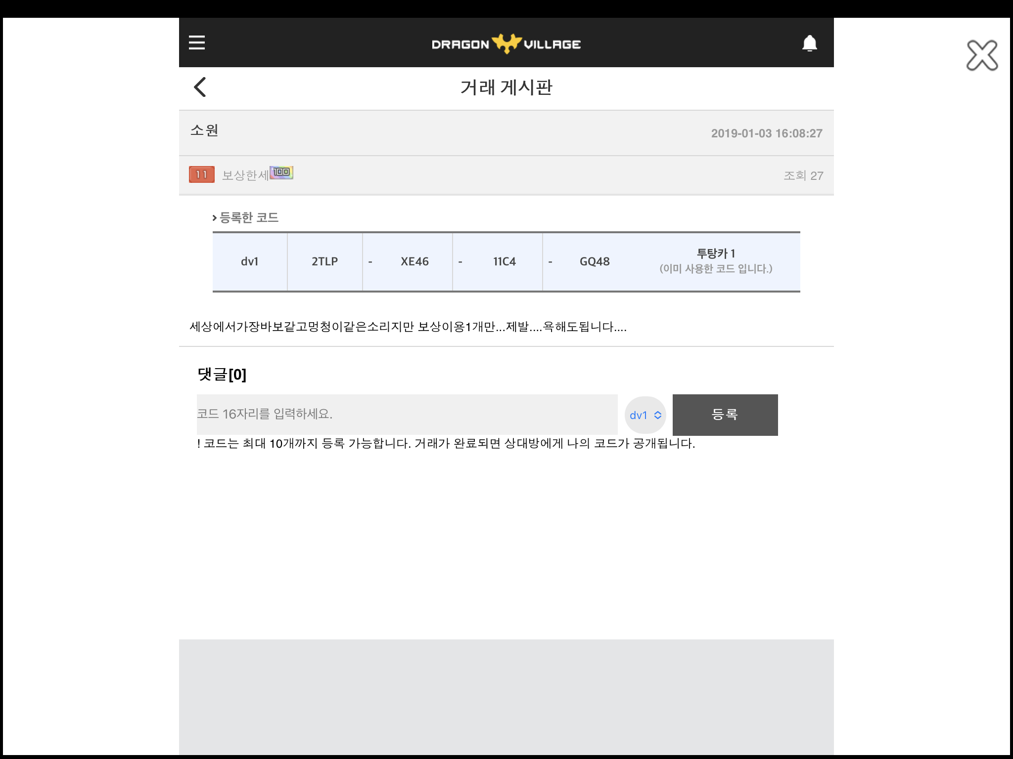 밑 사진은 제가 거의 3년전에 시세맞지도 않는 알 갖다대면서 구걸한 제 자신을 반성하는 내용입니다