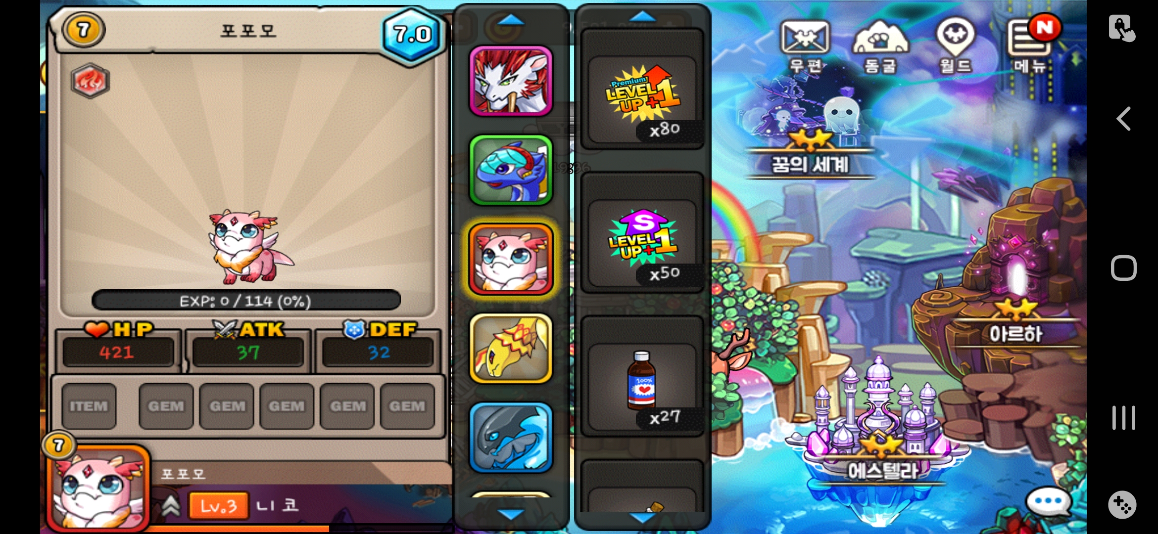 렙업 하나도 안쓰고 정말 순수 모험만 돌면서 80개 있던 렙다 다 쓰고 나니 7레벨 아기자기한 뽀뽀모 만들었는데 강림 만드는 법 보니까 많이 힘들어 보이더라구요ㅠ? 근데 각성 만들기엔 너무 강림과 각성의 차이가 큰거같구요 어릴 때 드빌을 어떻게 했나 싶네요.. 그땐 등급 신경도 안쓰고 했던 때라 등급보고 드래곤 몸무게인 줄 알았다죠..ㅋㅋㅋ 이럴 때 보면 드빌 유저 분들이 참 존경스러워 집니다..ㅠ