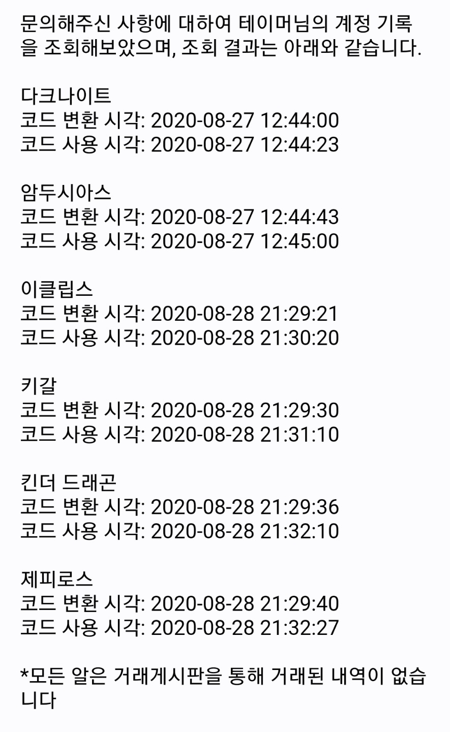 그 이후에 피해자분이 윗 사진처럼 알들이 사라진 시간을 하브에게 받은결과 알이 사라졌던 시간과 그리고 하늘님이 대현으로 들어갔던 시간이 매우 유사하다는것을 알았고 그당시에 제게 말씀하신거로 압니다