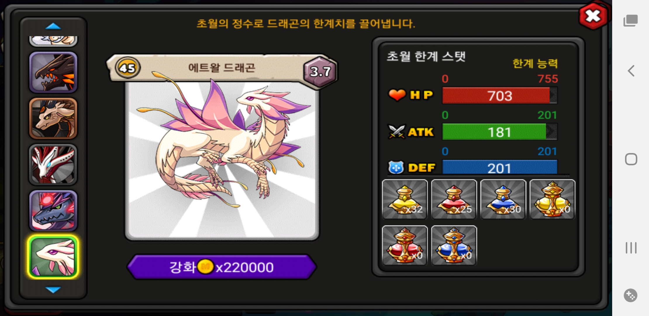 에트왈 45랩 7.0 스탯을 알고 싶네요 ㅠㅠ