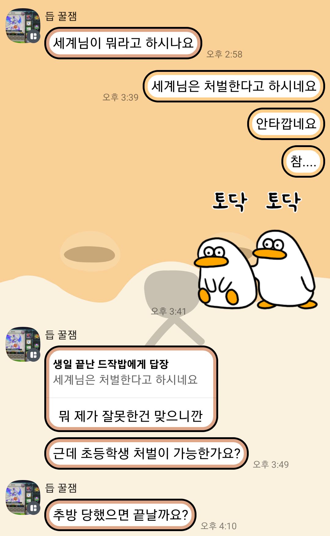 더월드방에서 세계님께 선물한 그림 도용한 분이시길래 초범이고 사과도 해서 살려줄까 해서 세계님께 물어봤더니 사형이래서 다독여주고 있었더니 이딴 말을 하네요..? 이게 오바일지는 몰라도