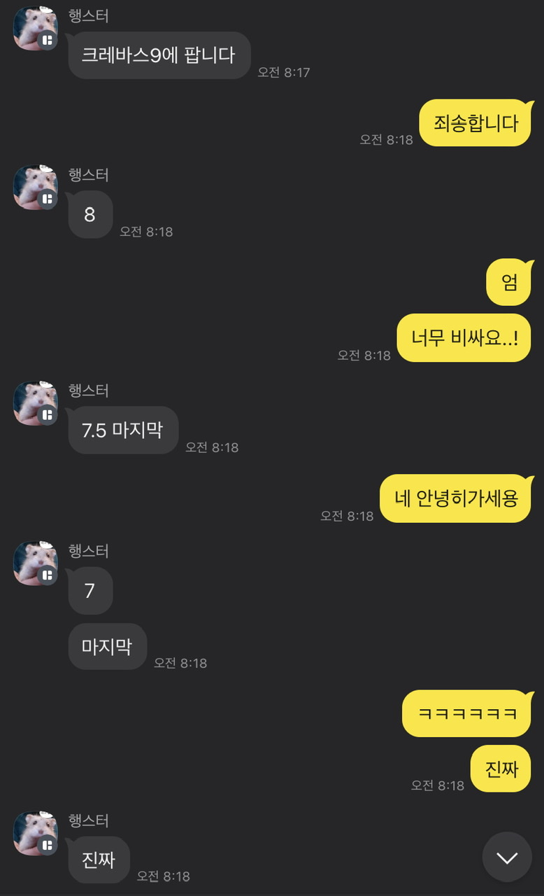 크바 나왔던 첫날에 9에 판다는 사람도 있었는데요 뭐 ㅋㅋ
