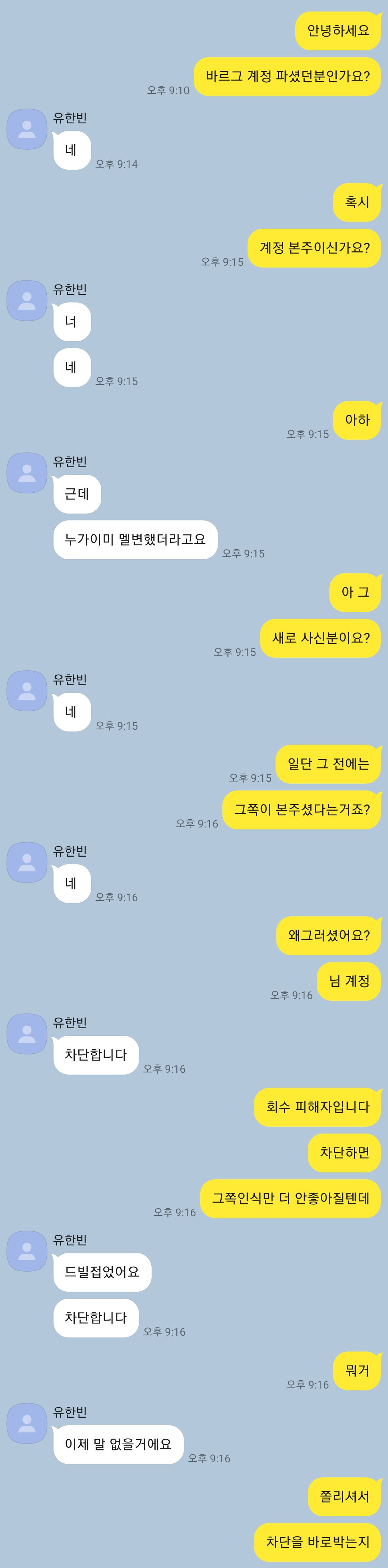 방금 삭제된 바르그 계정 본주와의 대화내용입니다.