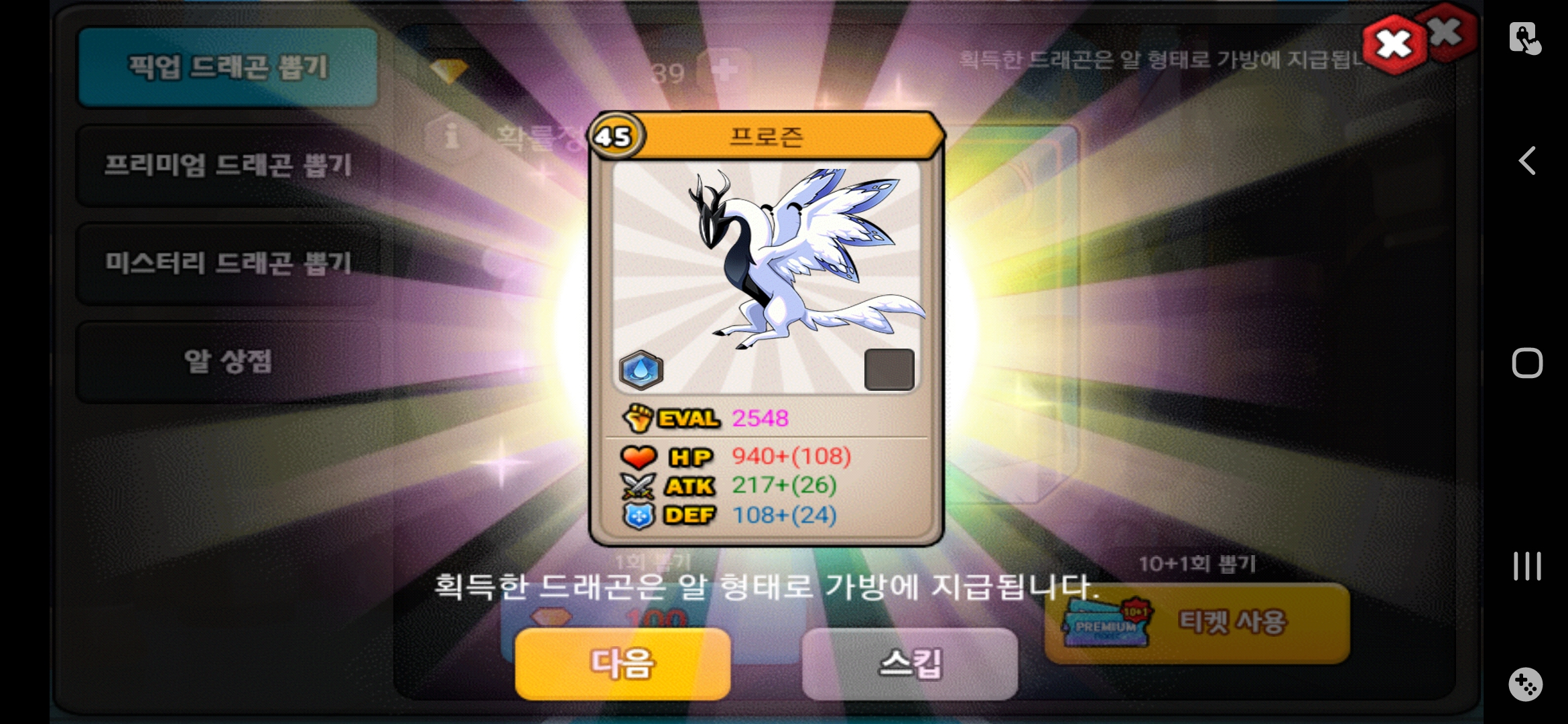 원스토어 업데이트 끝나자마자 뽑았네요 다들 뽑으시길 기원합니다