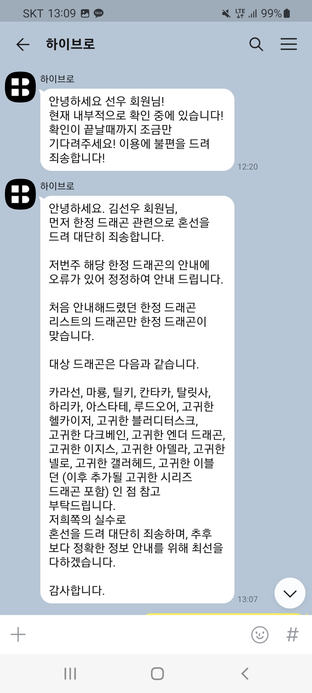 본인들 실수가 맞다고 인정했고 화썬 샾테는 한정용 아닌게 맞다고 하네요
