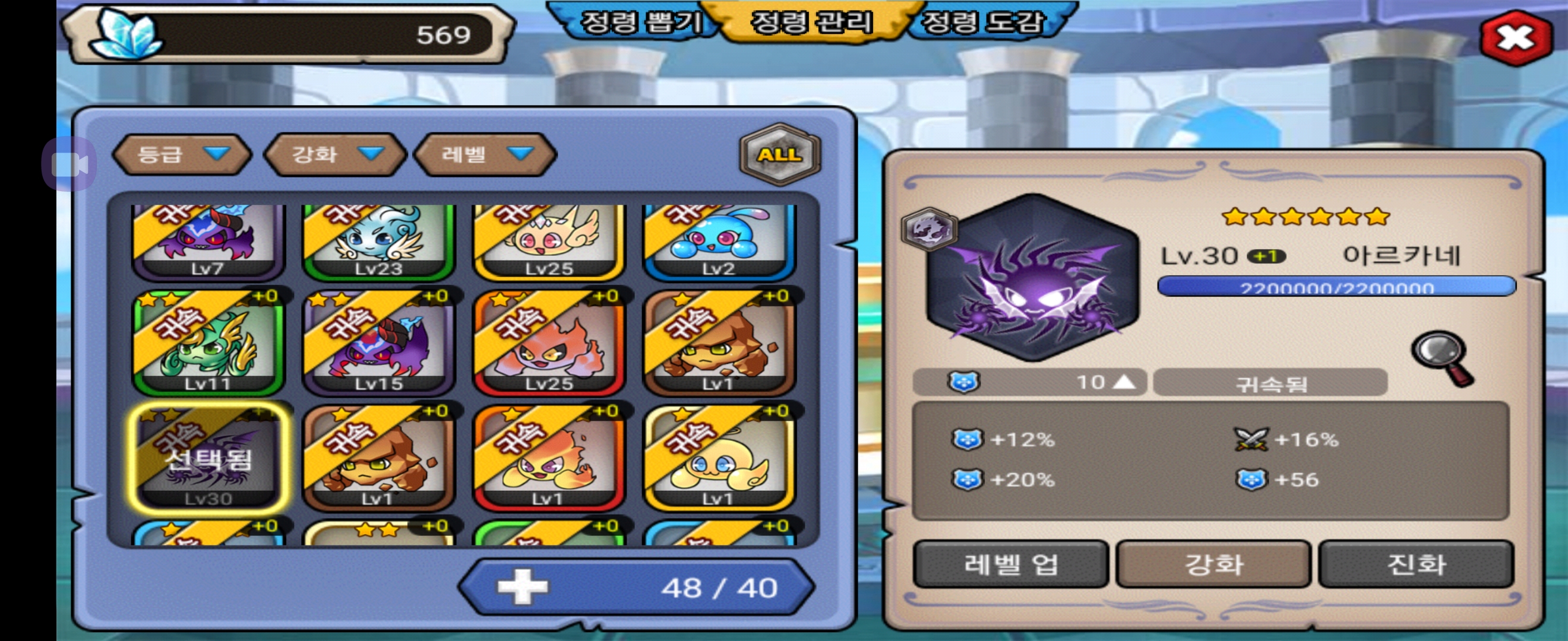 한 달 전쯤 정뽑에서 이 친구를 뽑았습니다. 당장에 괜찮은 정령이 없어 일단은 1강을 찍어놓은 상태인데요, 이 친구 풀강 해주는게 좋을까요? 디바인 스톤을 제외하고 재료로 쓸 5성 정령은 풀강을 찍을 만큼 넉넉히 있습니다 (올 플옵)
