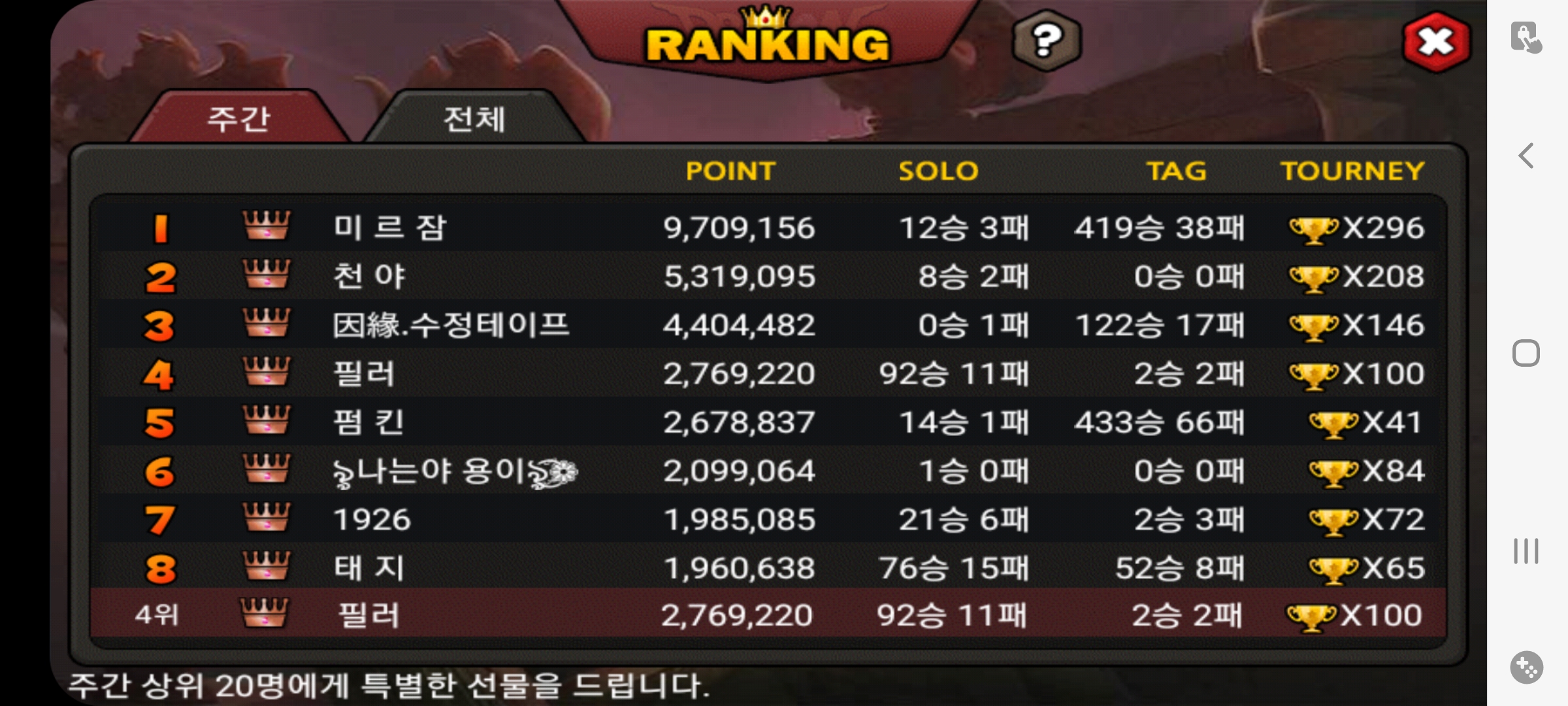 첫 주간 토너 100승