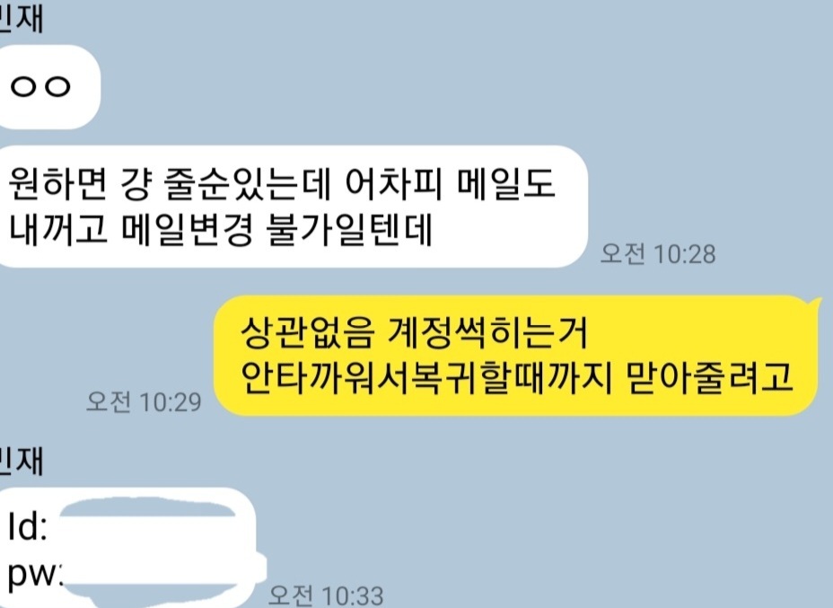 이것은 제가 나눴던 대화내역의 일부이자 계정을 받은 부분입니다.