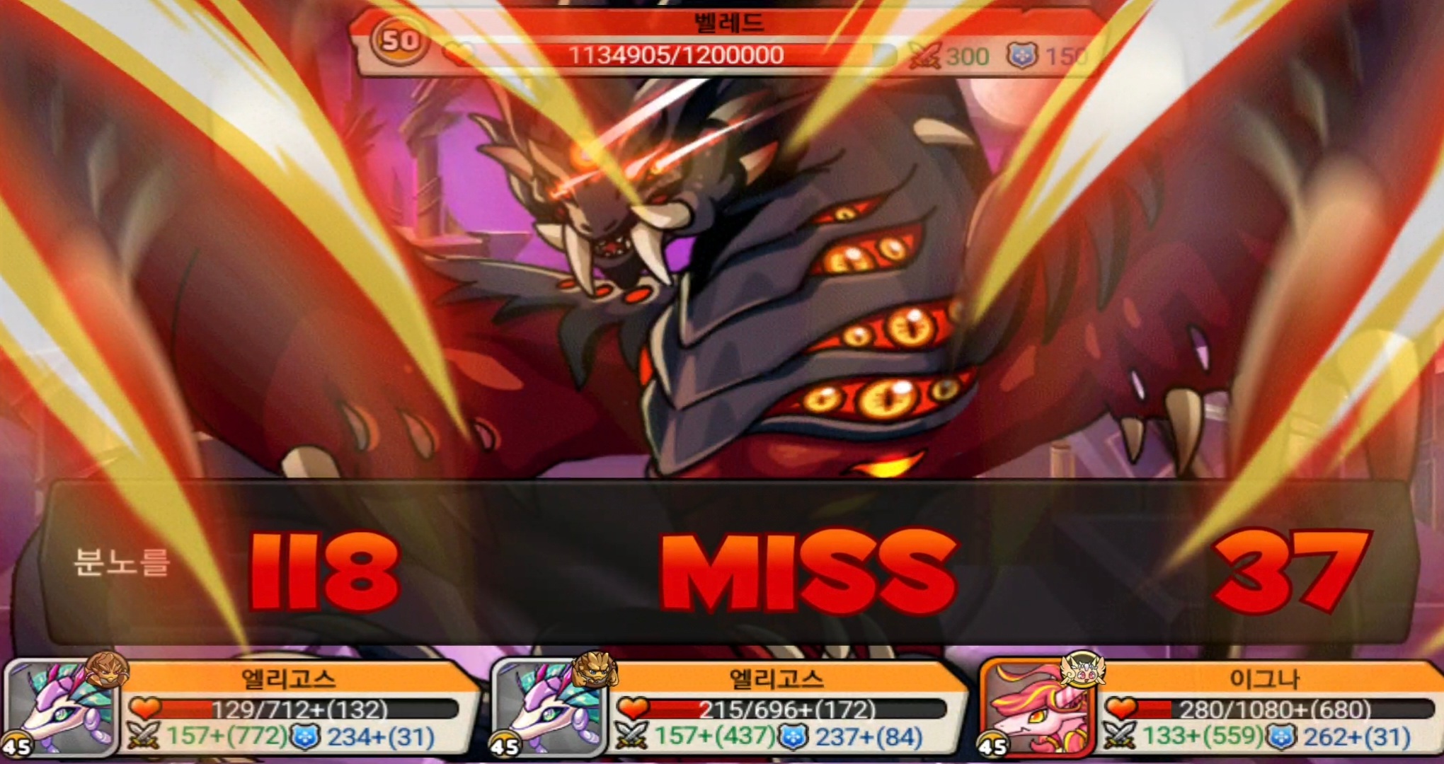 균등하게 체력이 깎이며 딜을 넣는 모습을 볼 수 있습니댜.