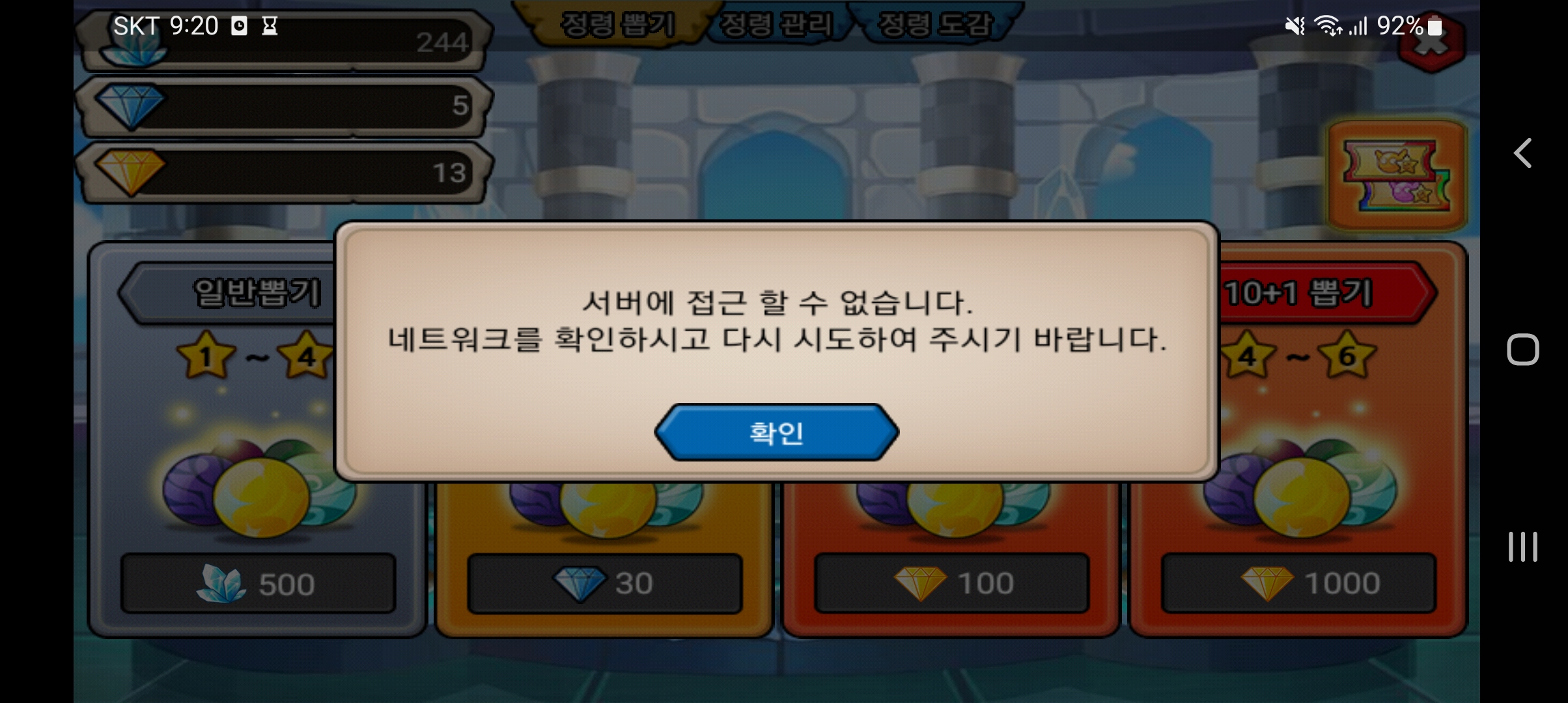 정령이 안나오는 경우는 뭐죠?