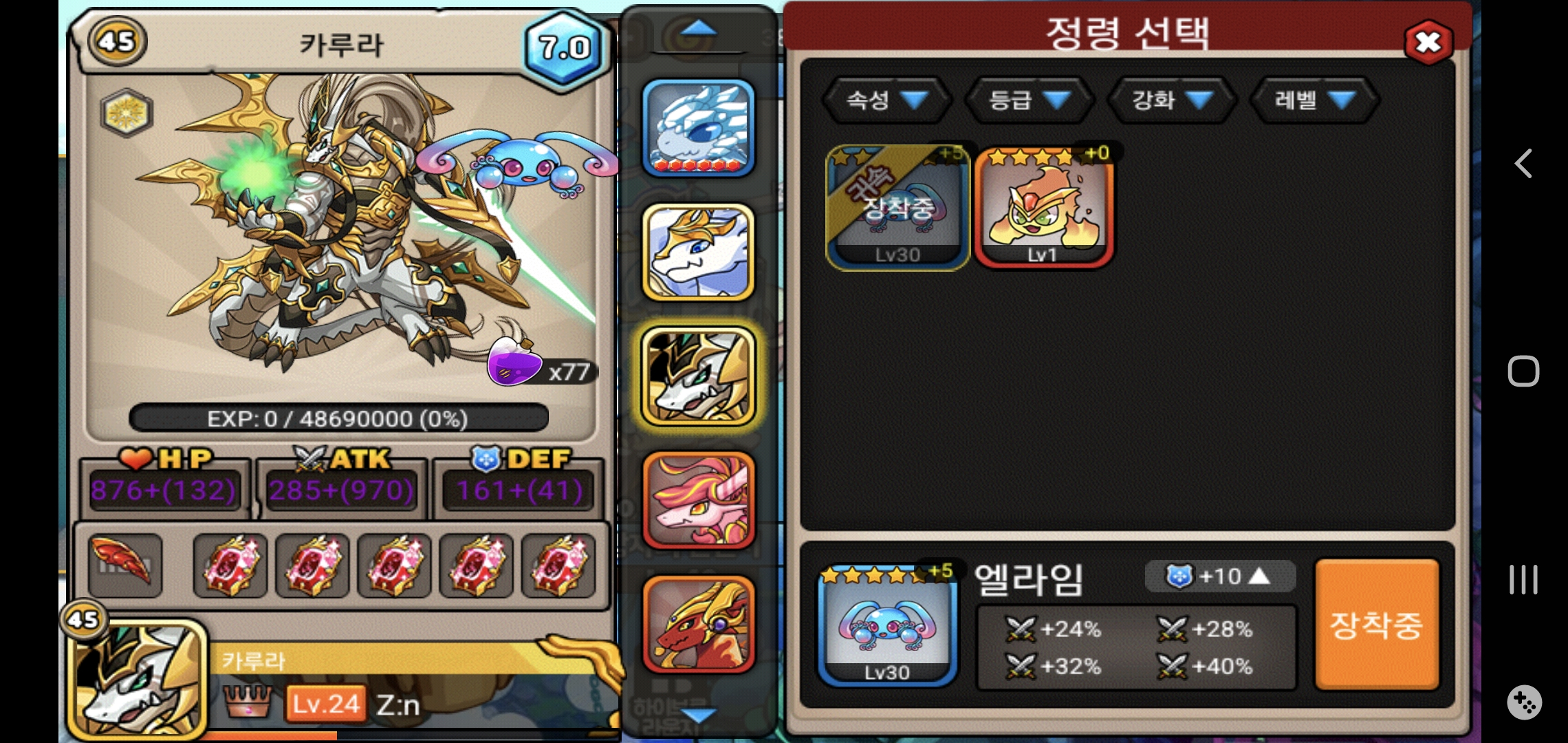 지금 엘리고스 준초월인애 강림할때 카루라갈아서 올공정령 박아주려고합니다