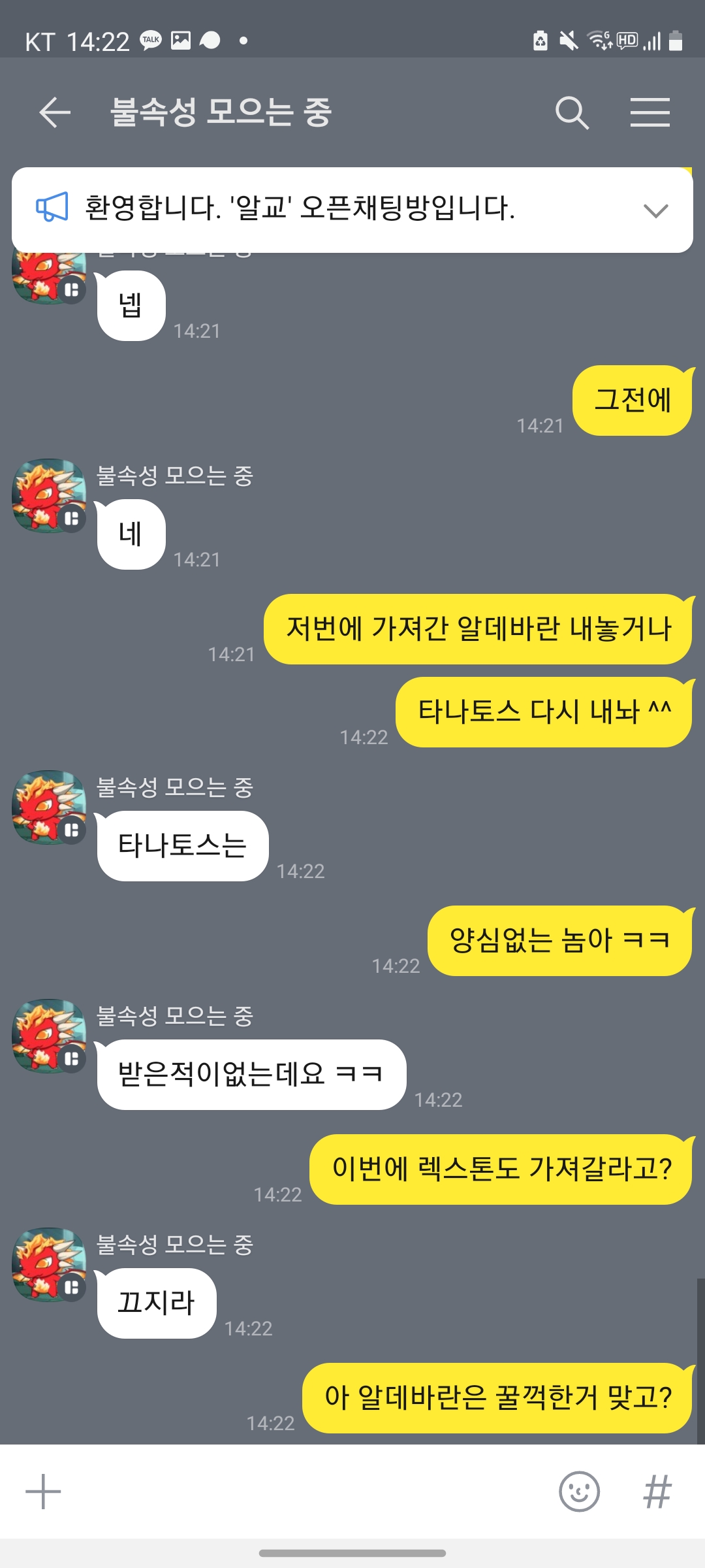학습이 안되는건지 같은 챗방에 들어오네 ㅋㅋㅋㅋㅋ