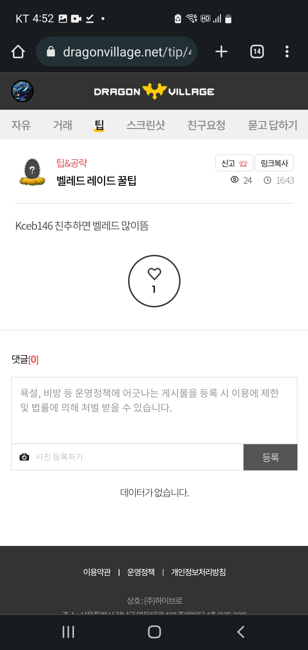 그런데 남의 글에 댓글 빈칸 싸지른 건 안 없어졌더군요.