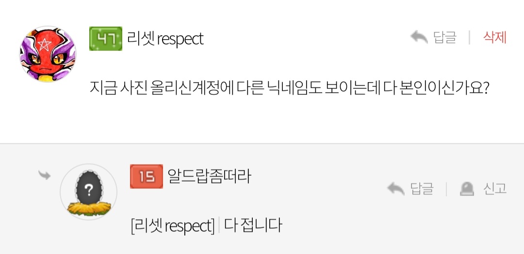 욕박은거에대한 사과?문에 사진올리는데 계정이름들이 다 다르길래 본인계정인지 물어봤는데요