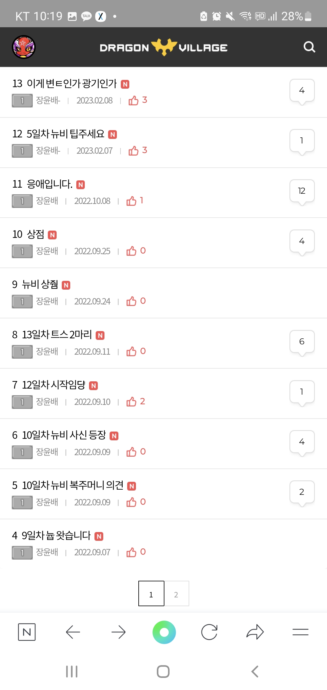 늅뉴비의 게시글 응애
