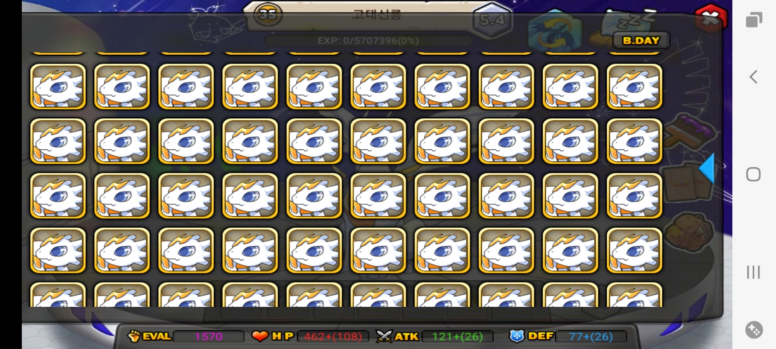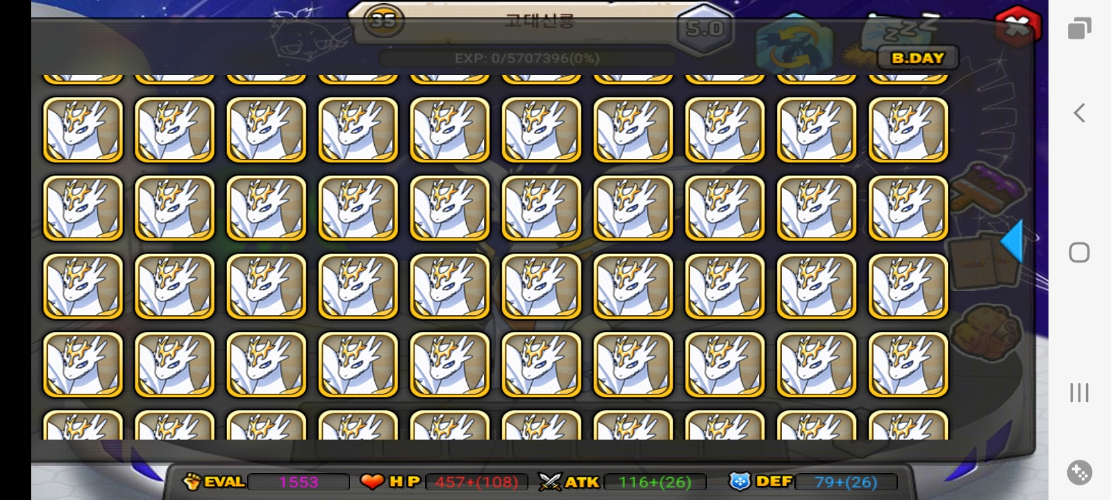 그 고신 100마리 성체 35 만들어놨더니 오류 떠서 안들어가지길래 지웠다까니 저렇게 변했는데 복구 해주셔야겠죠?ㅎㅎ