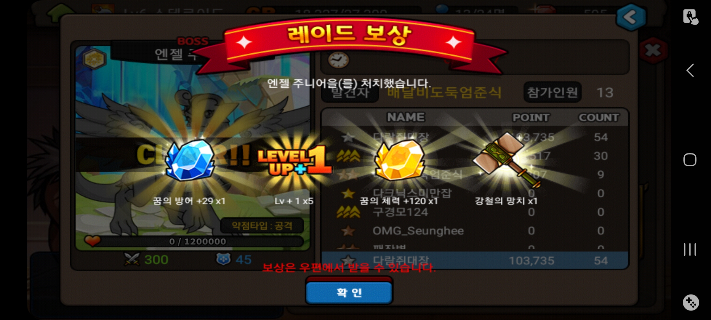 맨 위에가 접니다... 시간도 충분히 남아 있었고 제 바로 밑에 분이 막타를 뺏으셨어요... 횟수로 봐도 고의로 뺏은거고 우리 길드원이긴하나 추방을 해야할지 참...