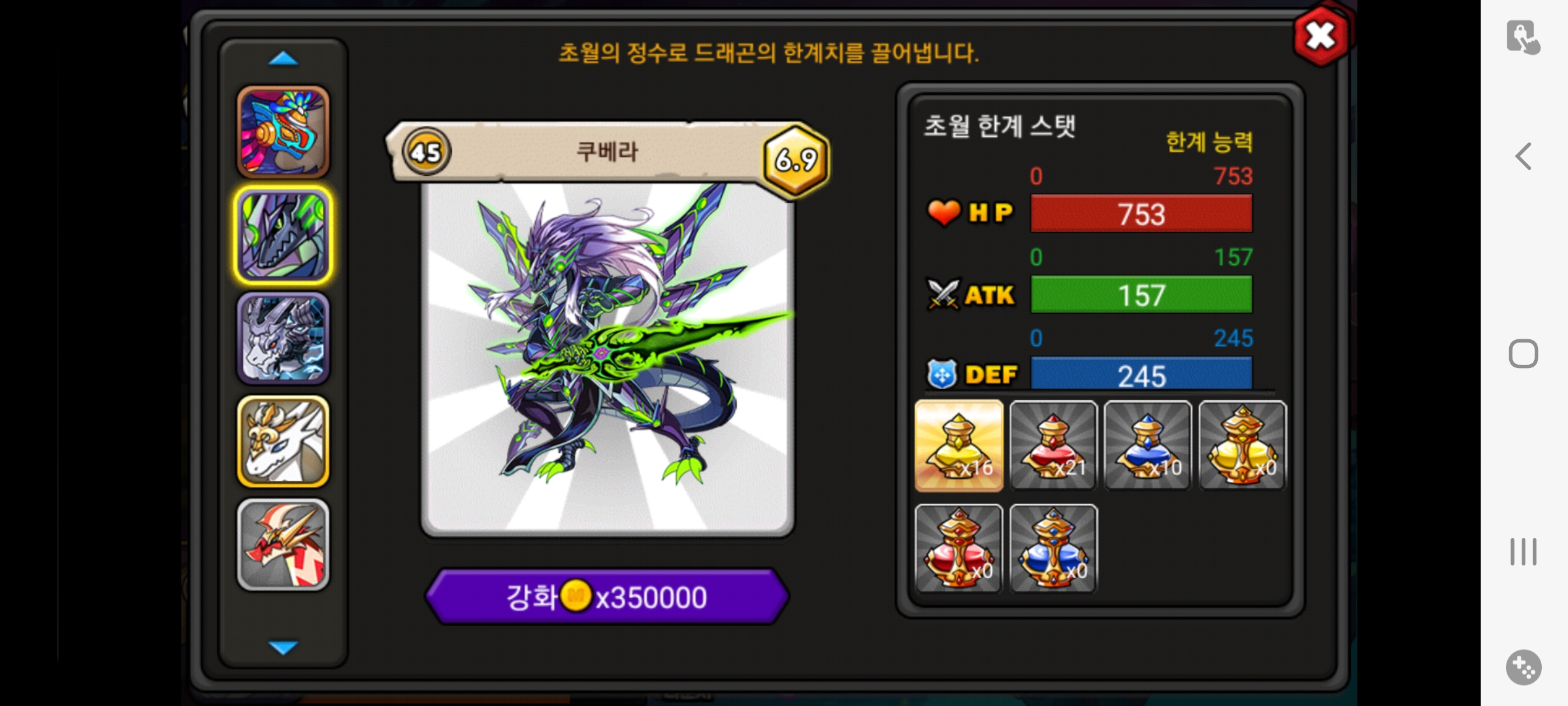 초월의정수 모든능력치 맥스로 먹였는데 왜 6.9죠?뭐 어떻해야 여기서7.0이되죠?