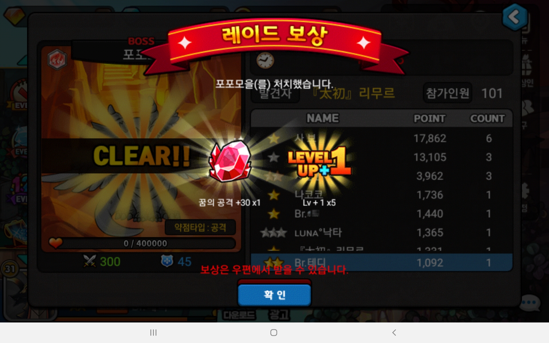 포포모 피가 70000정도 남았을 때 들어가려 했으나, 와이파이 환경 때문에 30초정도 렉이 걸렸고 들어가보니 피가 7000쯤 남아 있었습니다.