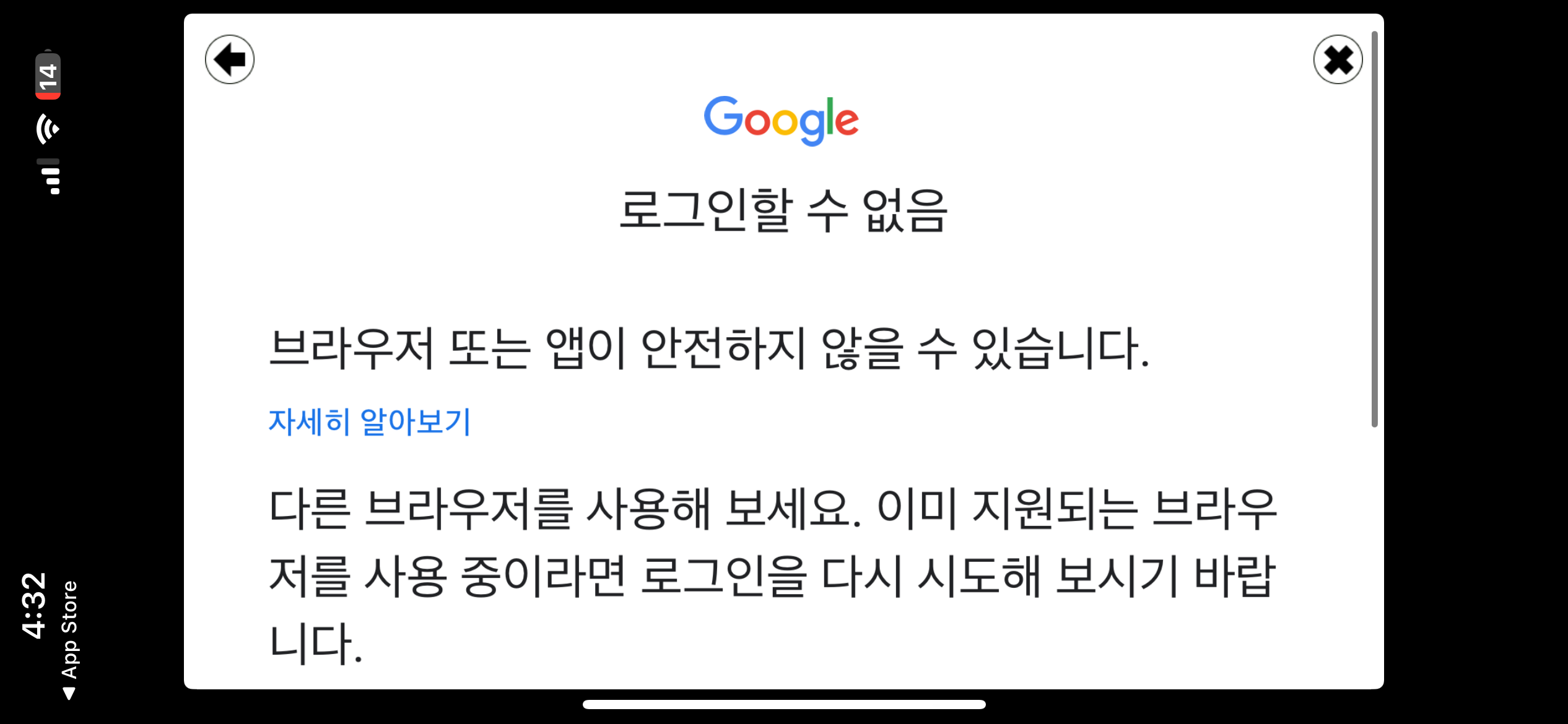 렙업 잘 못해서 지웠다 깔았는데 구글 로그인 하려니까 자꾸 ㅇ ㅈ 랄 나노 ;; 해결 법좀