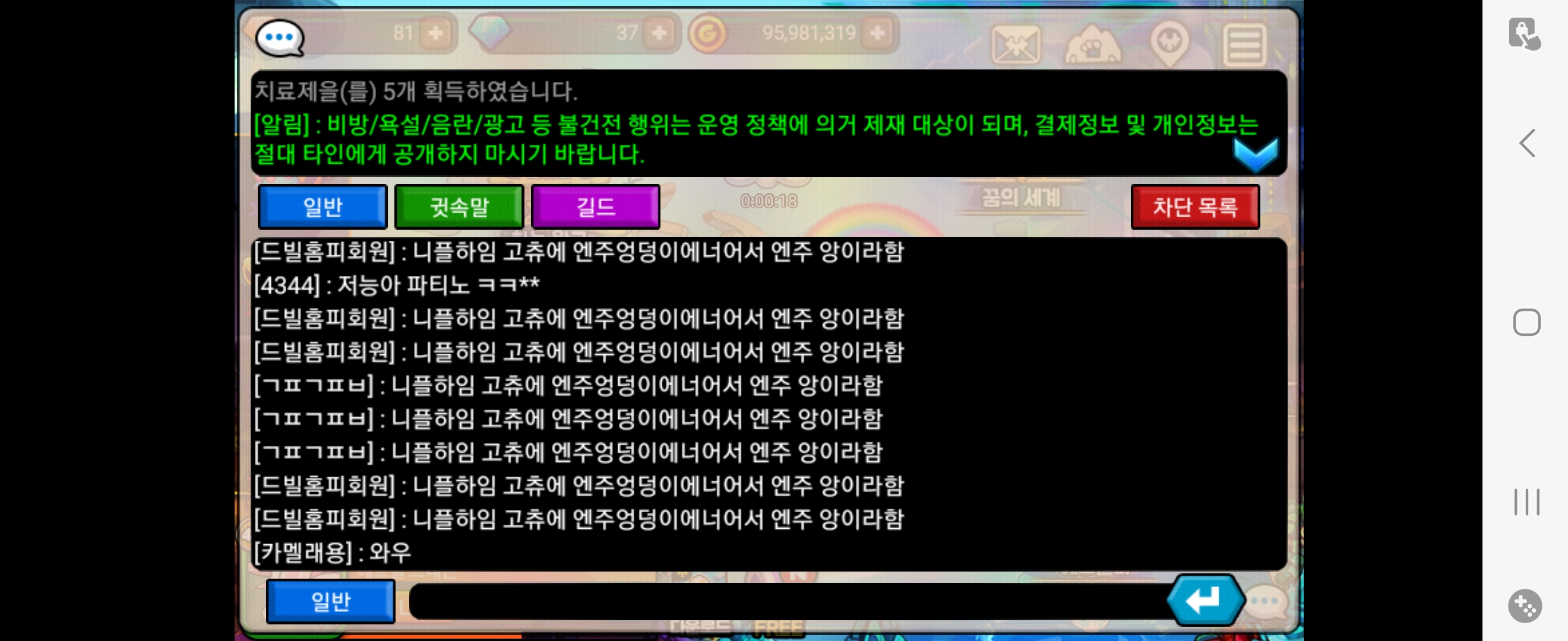 인게임 모니터링을 하든 신고 시스템을 활용하든 빠른 조치가 필요해 보입니다. 이런 채팅들은 신고 차단을 해도 계속 올라오는데 관리가 너무 소홀하신 것 같습니다.