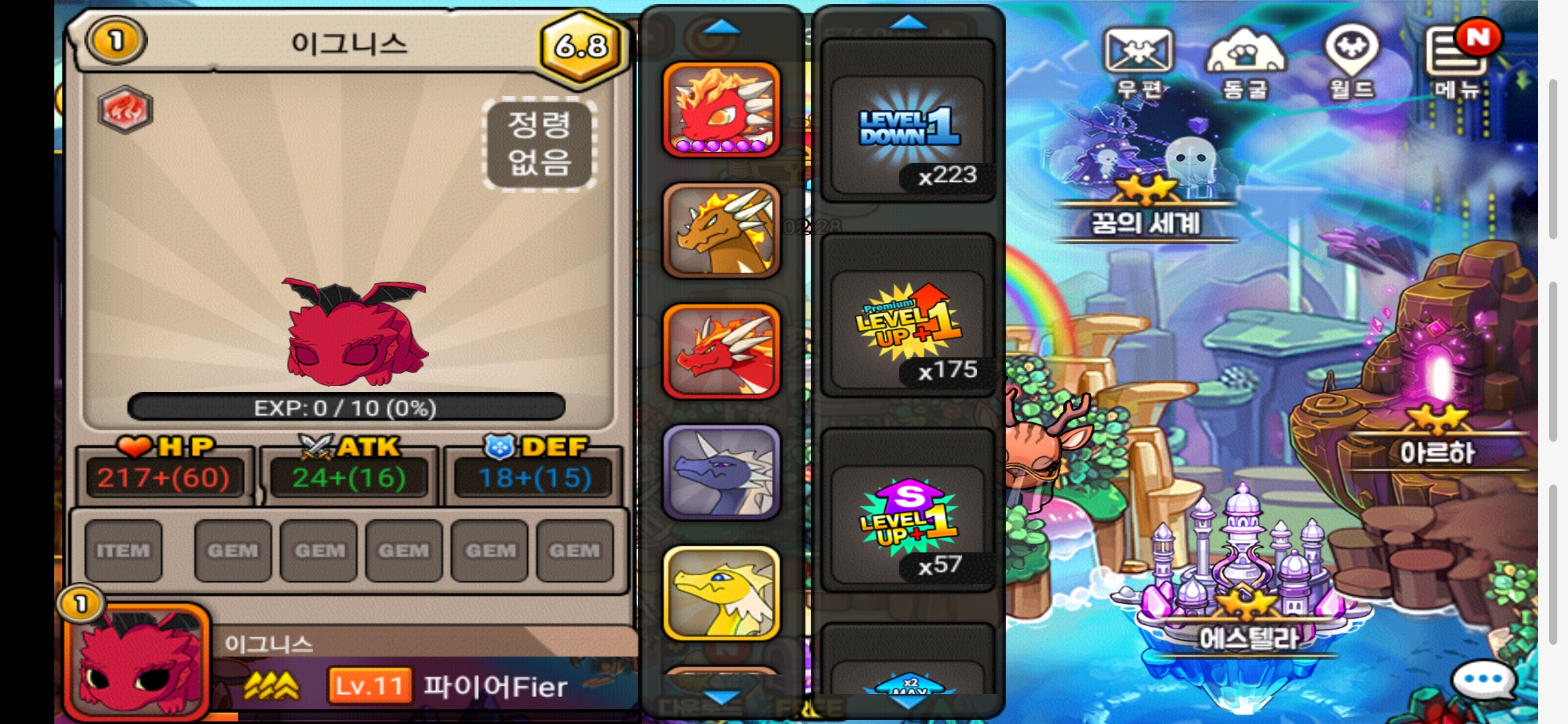 진각 재료용 키울려고 이그니스 부화시키고 세이브했더니 얘 일업을 안먹네;;; 얘 어케 처리하죠 꿈부 아깝네