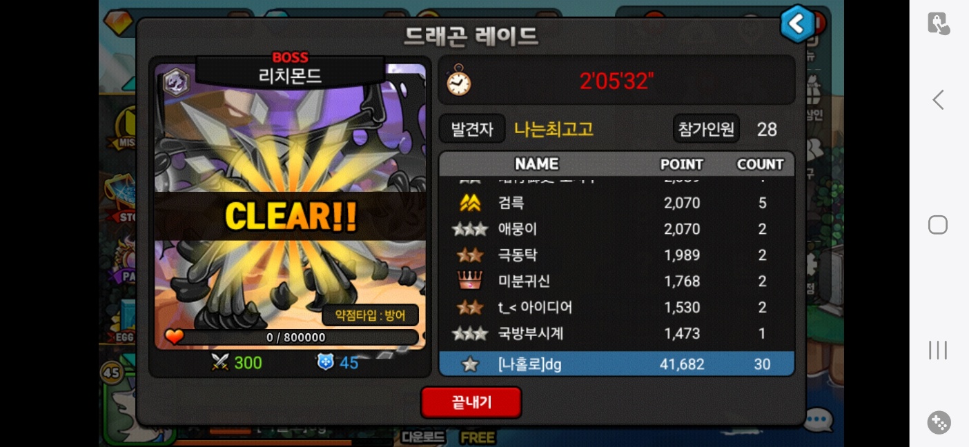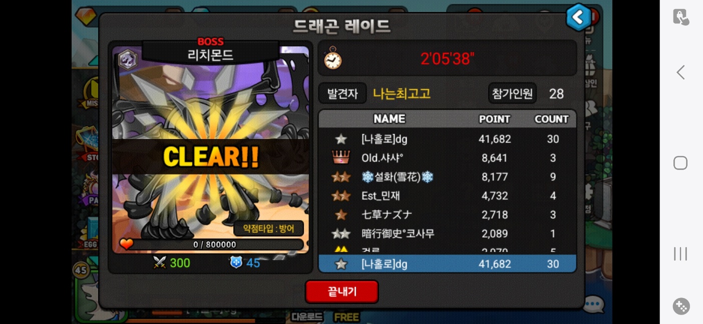 레이드 막타