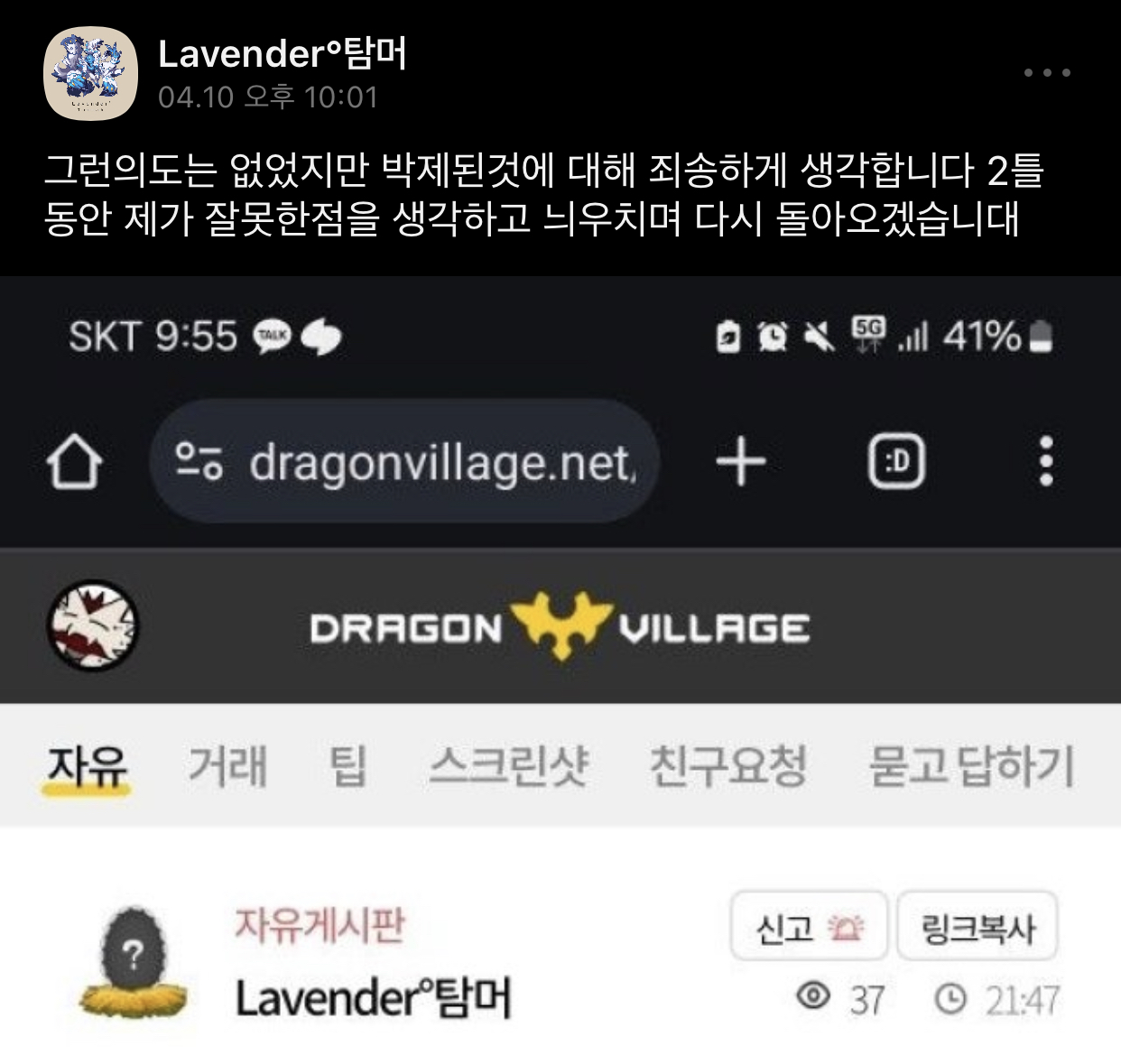 원시세보다 네다섯배 올려쳐서 알교각좀 봤더니 바로 훼방당해서 채팅싼거면서 ㅈㄴ 역겹노 ㅋㅋ 진짜 드래곤빌리지로 생계유지할정도로 먹고살기가 힘드노?