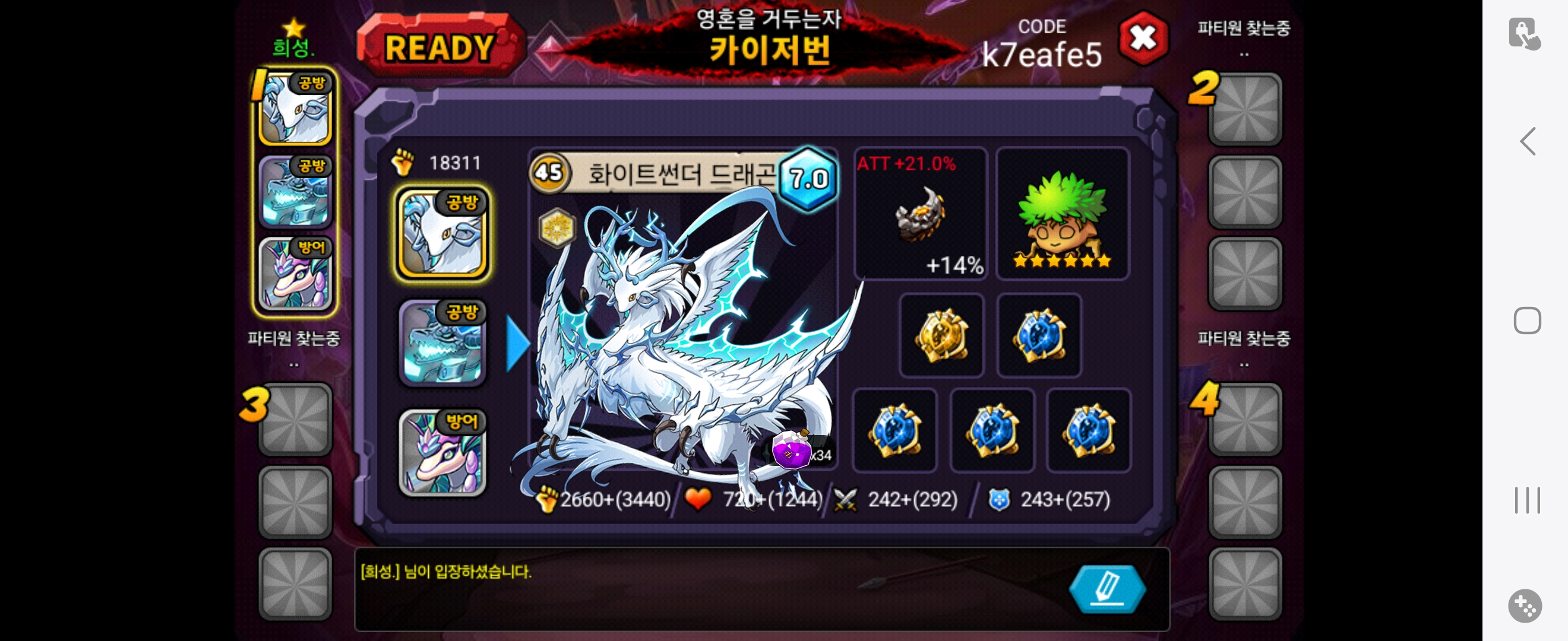 K7eafe5 처음부터 저가 키운 계정이고 6풀정 디바인 40만개 보유중입니다. 나이는 20살 입니다. 같이 성장할 길드 구해요.